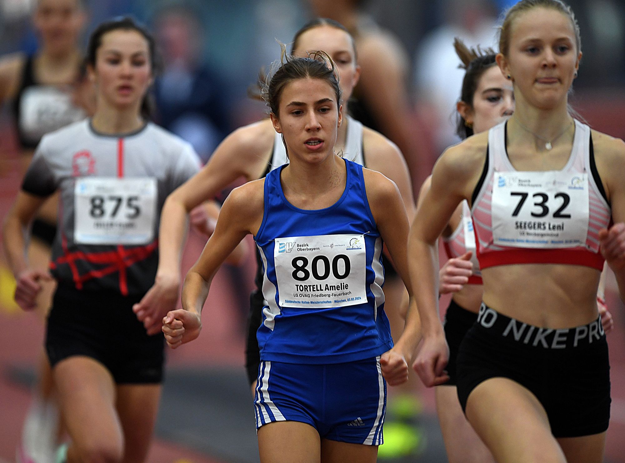 Nach ihrem eindrucksvollen Rennen bei den Hessischen Meisterschaften eine Woche zuvor ließ Amelie Tortell (LG ovag Friedberg-Fauerbach) auch in Karlsruhe nichts anbrennen. Mit einem taktisch guten Rennen lief sie sich einen Vorsprung von knapp drei Sekunden heraus und holte sich mit einer Zeit von 2:12,43min. die Goldmedaille.