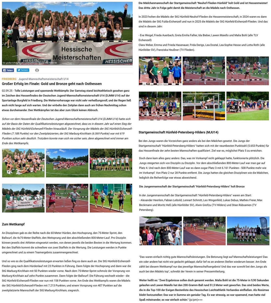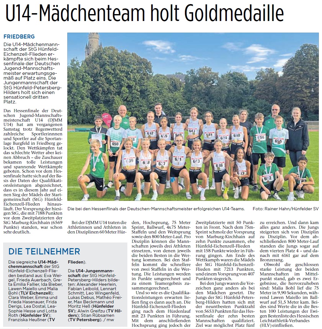 In 2023 holten die Mädels der StG Hünfeld-Neuhof-Flieden die Hessenmeisterschaft, in 2024 waren es dann die Mädels der StG Fulda-Eichenzell und nun in 2025 die Mädels der StG Hünfeld-Eichenzell-Flieden. Und das sind in diesem Jahr: