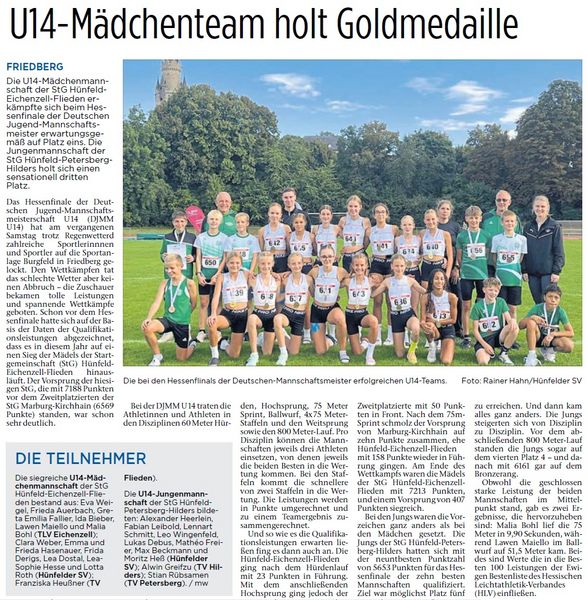 Die Mädchenmannschaft der Startgemeinschaft „Neuhof-Flieden-Hünfeld“ holt GOLD, ist Hessenmeister!