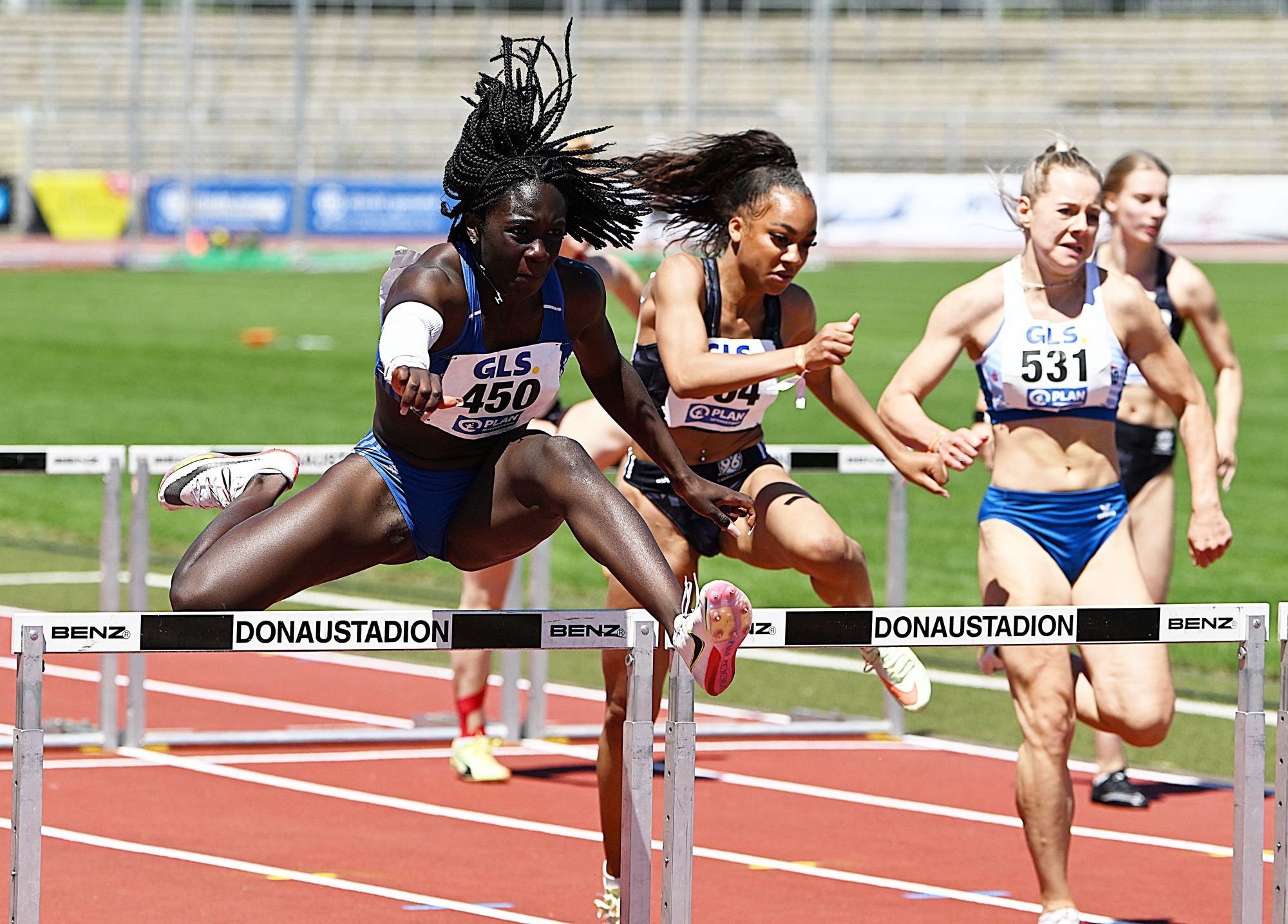 Auch das dritte „Hessen-Gold“ war keine große Überraschung. Holly Okuku (GSV Eintracht Baunatal/U18) machte bereits in der Kurve mächtig Druck und stürmte als Führende auf die Zielgerade. Keine Gegnerin könnte der hochgewachsen Sprinterin Paroli bieten, die sich bei einem Gegenwind von - 1,6 m/sec. mit 24,11 Sekunden sicher gegen Annika Just (LAC Passau/24,57 sec.) durchsetzte. Als Einzelstarterin ist EM-Vize Okuku für einen Cali-Start geblockt, in der Staffel wird die Nordhessin wahrscheinlich jedoch das deutsche Quartett in Cali über 4x100 Meter verstärken. In den Vorläufen gingen noch Eva Duvenkamp (TV Groß-Gerau/25,66 sec.), Emelie Kastl (LG Bad Soden-Sulzbach-Neuenhain/25,67 sec) sowie Raphaella Zali (TSG Wehheim/26,14 sec.) auf Sekundenjagd.
