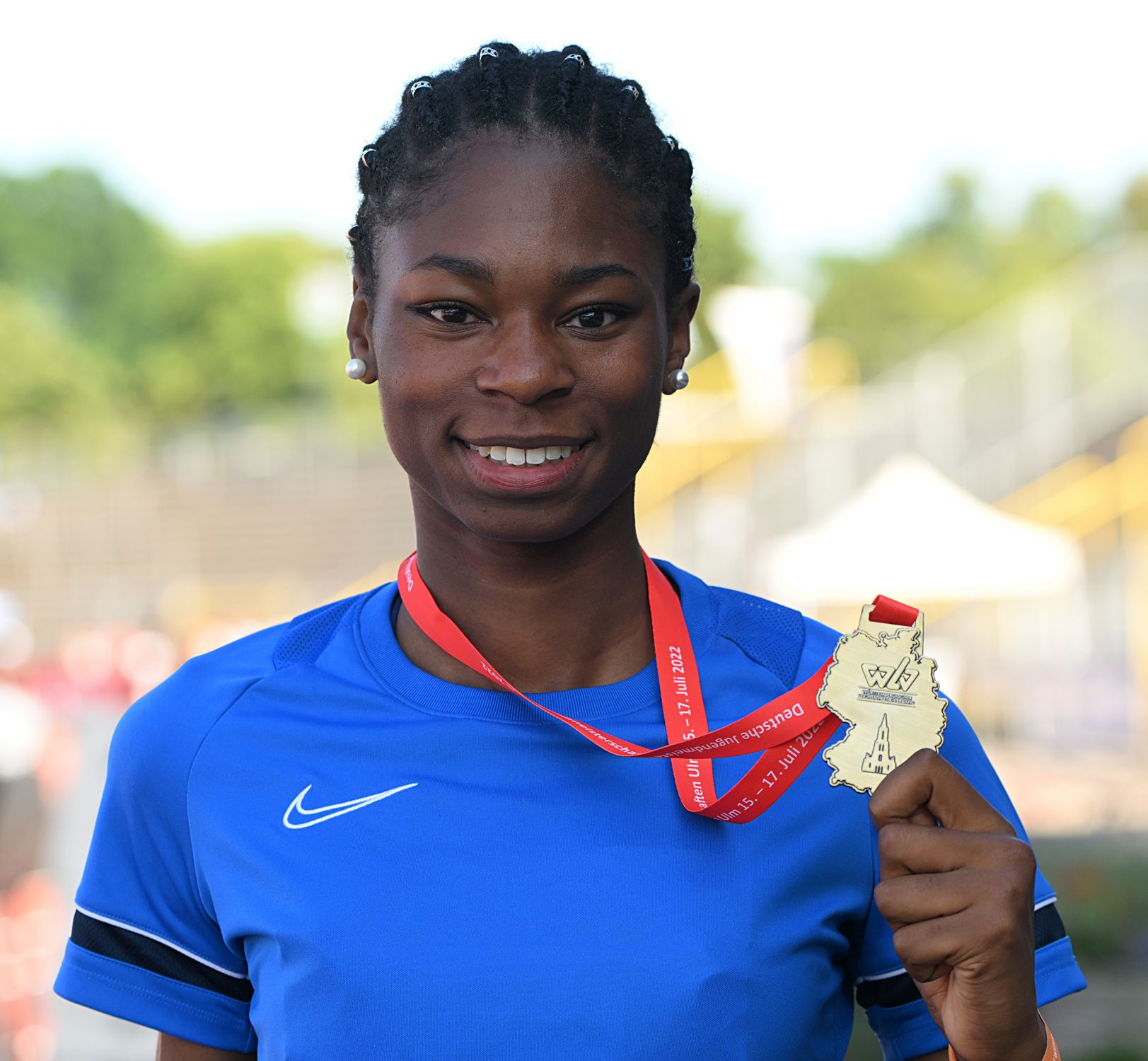 Jule Sandmann (Eintracht Frankfurt) wurde als Achte zur Siegerehrung gerufen, nachdem sie ihr 500 Gramm schweres Sportgerät auf 43,32 Meter geworfen hatte.