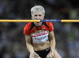 Für tolle Stimmung im Eintracht-Stadion sorgte nach Betty Heidler auch Ariane Friedrich. Vor allem mit ihrem starken dritten Versuch über zwei Meter wusste Ariane das Braunschweiger Publikum zu begeistern. Dass es dann nicht auch noch für 2,03 Meter reichte, war für Ariane in Ordnung: „Es lief gut heute und zwei Meter sind ein sehr gutes Ergebnis. Woran es lag, dass es mit den 2,03 Metern nicht geklappt hat, müssen wir erst analysieren“, sagte sie. Den Formtest für Barcelona hat die 26-Jährige jedenfalls mit Bravour bestanden.