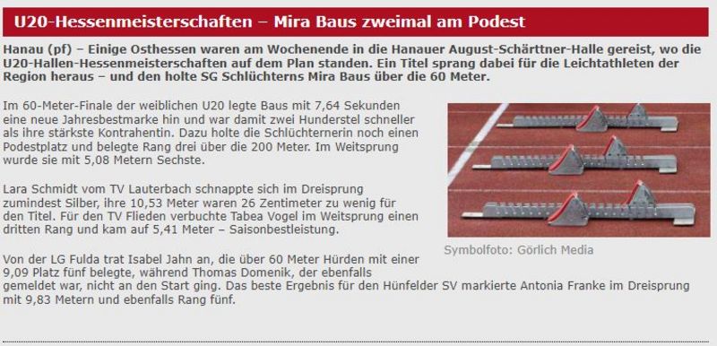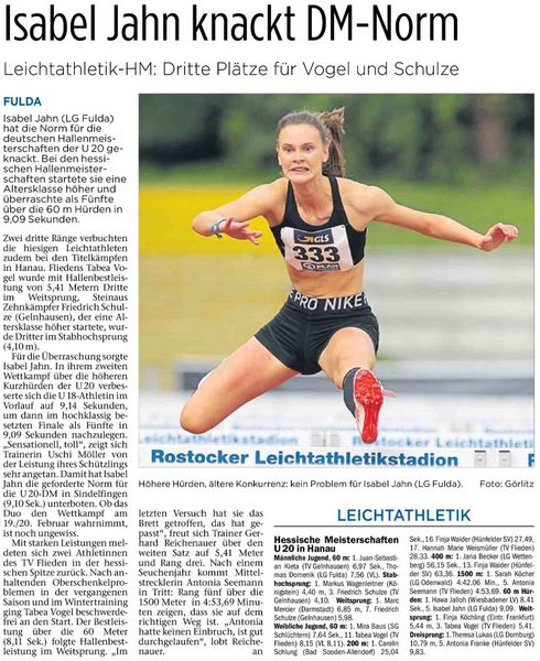 - 5.Platz, Isabel Jahn, 60m Hürden, 9,09s, LG Fulda