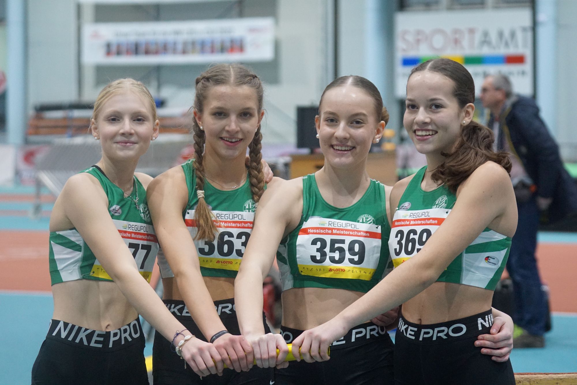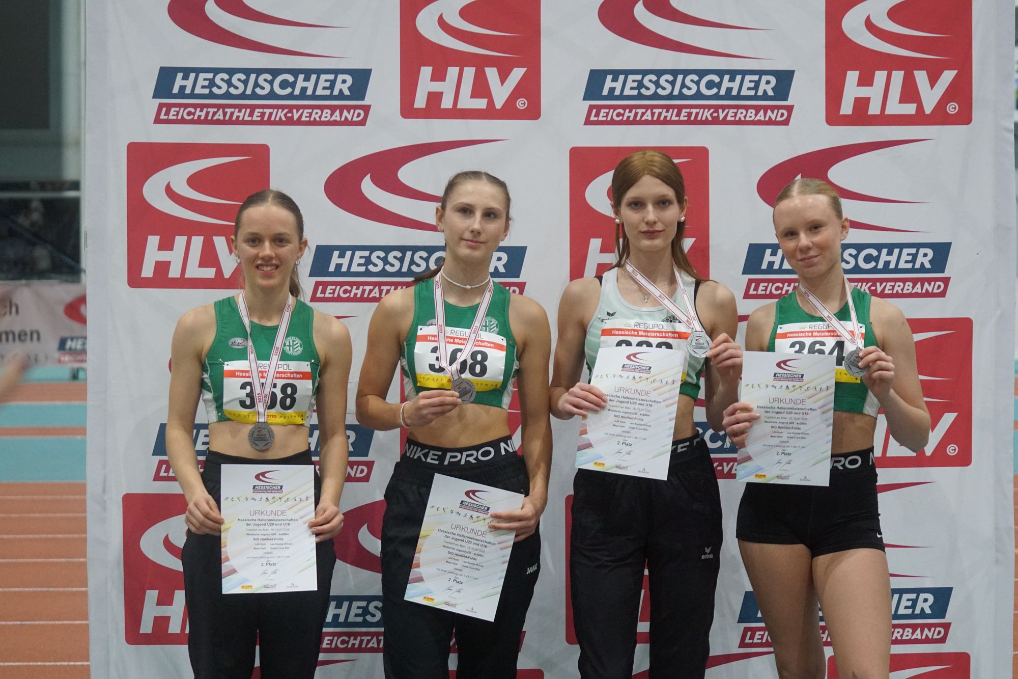 - 4x200m, WJU20, 2.Platz, 1:49,11 Minuten, Startgemeinschaft Hünfeld-Fulda, Lilli Roth, Lea-Sophie Schulz, Maya Habl, Greta Lucia Ritz (alle von der WJU18 hochgestartet, alle Hünfelder SV)