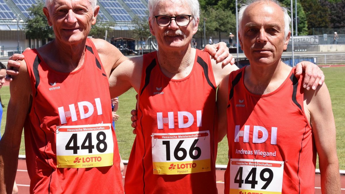 Marburg - Der Startgemeinschaft (StG) Baunatal-Borken gelang der einzige Sieg bei der Hessischen Staffel-Meisterschaft der Leichtathleten im Georg-Gassmann-Stadion in Marburg. In 10:58,58 Minuten umrundeten Gereon Bode sowie die Borkener Helmut Kleinmann und Hans-Joachim Schröder ( Foto) über 3mal 1000 Meter der Senioren M 60 das Stadion-Oval und verbesserten mit dieser Zeit den neun Jahre alten Kreisrekord des TSV Obervorschütz um mehr als fünf Sekunden. Zudem wurde diese Zeit im DLV in dieser Saison noch von keinem Trio erreicht.