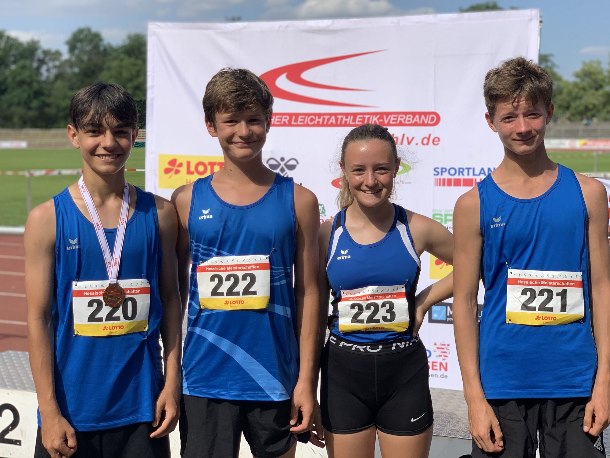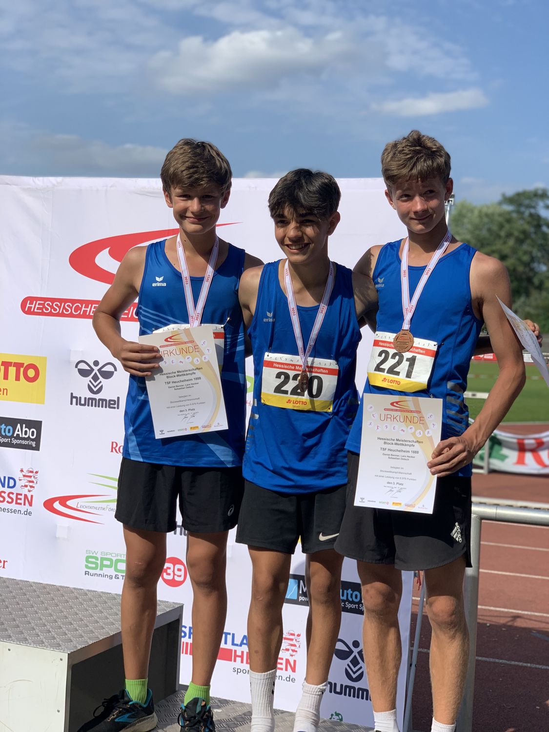 Älter wurde es mit dem M14-Dreigestirn der TSF Heuchelheim: Sebastian Detsch und Daniel Benner im Block Sprint/Sprung sowie Lars Hecker im Block Wurf. Gleich „doppeltes Pech“ traf die beiden Detsch und Benner. Sebastian Detsch krönte sich zwar mit einer starken Vorstellung mit der Hessischen Bronzemedaille (2.519 Punkte), der neue Hessenmeister vom TV Rendel beendete seinen Mehrkampf jedoch mit 2.522 Punkten, der Zweitplatzierte mit 2.520. Verdammt eng! Daniel Benner folgte seinem Vereinskumpan mit 2.471 Zählern auf den vierten Rang. Lars Hecker wurde in seinem Wurf-Block Sechster, sammelte dabei 1.988 Punkte. Gemeinsam erlangte das Trio jedoch in der Mannschaftswertung den Bronzerang! Jedoch hatten die Heuchelheimer nicht nur männliche Vertreter, auch Coach-Tochter Leonie Arampatzis durfte in der W12 das erste Mal auf Hessischer Ebene antreten, sie nahm sich den Block Sprint/Sprung zur Brust. Unter anderem im Speerwurf sicherte sie sich nach längerer Verletzungsverhinderung eine neue persönliche Bestmarke (15,86 Meter), sammelte am Ende insgesamt 1.748 Zähler.