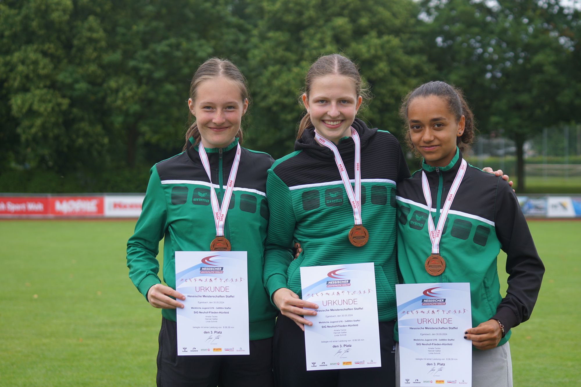 - Die 3 x 800m-Staffel der Weiblichen Jugend U16 der StG „Neuhof-Flieden-Hünfeld“ in der Besetzung „Amalia Teckie, Hannah Sattler und Linda Schmitt"! erreicht mit einer gelaufenen Zeit von 8:06,58 Minuten den 3. Platz!