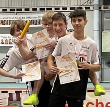 Mehr noch stand Luis Alonso Merino (TSV Eintracht Gudensberg) in der Main-Metropole im Blickpunkt. Mit einer Steigerung auf 7,59 Sekunden erreichte der Spross einer deutsch/spanischen Beziehung das Finale der schnellsten hessischen Nachwuchs-Sprinter und lief hier in 7,70 Sekunden auf den sechsten Rang. Danach folgte der große Auftritt über 4mal 100 Meter. An zweiter Position eingesetzt lief der GAZ-Schüler nach guter Vorarbeit von Nico Wilke den entscheidenden Vorsprung der StG Heckershausen /Heiligenrode/Gudensberg mit weiterhin Ben-Marvin Kienhorst und Dion Hähner zum Sieg in 50,71 Sekunden vor dem Nachwuchs der Eintracht Frankfurt (51,41 s) heraus.