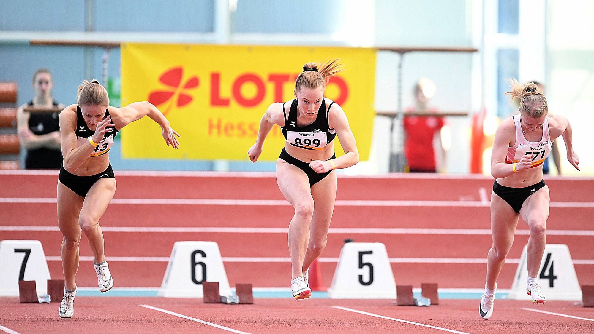 Erwartungsgemäß deutlich war der Vorsprung, den sich Top-Sprinterin Laura Müller (SV Go! Saar 05) über 200 Meter erarbeitete hatte. Sie beendete die Hallenrunde in flotten 23,78 Sekunden und hatte dabei fast eine Sekunde Vorsprung auf Elisa Lechleitner (LAZ Ludwigsburg/24,75 sec.). Carolin Schlug (SSC Bad Sooden Allendorf/noch U20) sicherte sich mit 25,05 Sekunden SDM-Bronze. Unter die Top-Acht sprinteten hier noch Antonia Schrimpf (LG Fulda/5.) in 25,19 Sekunden sowie Marie Fritzler (ASC Darmstadt/6.) mit 25,25 Sekunden.
