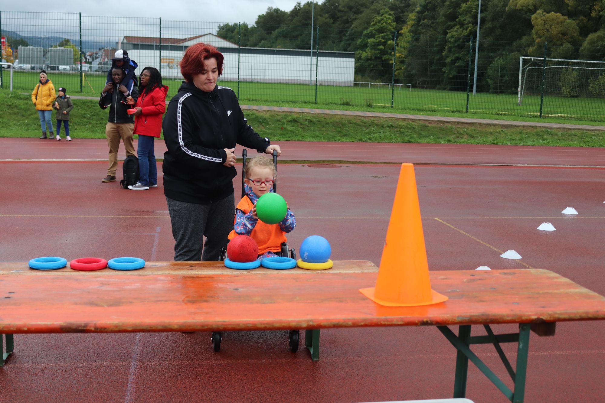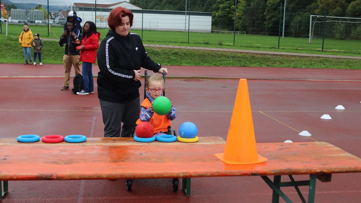 Die ersten Meter versuchte Joanna ängstlich, ihren Rollstuhl abzubremsen. Doch dann hatte sie sich an das schnelle Tempo gewöhnt, mit dem ihre Mutter Christina Honikel sie während des Biathlons von Wurfstation zu Wurfstation schob. Zum ersten Mal nahm die Fünfjährige trotz ihrer Behinderung aktiv und nicht wie sonst als Zuschauerin an einem Leichtathletik-Wettkampf teil.