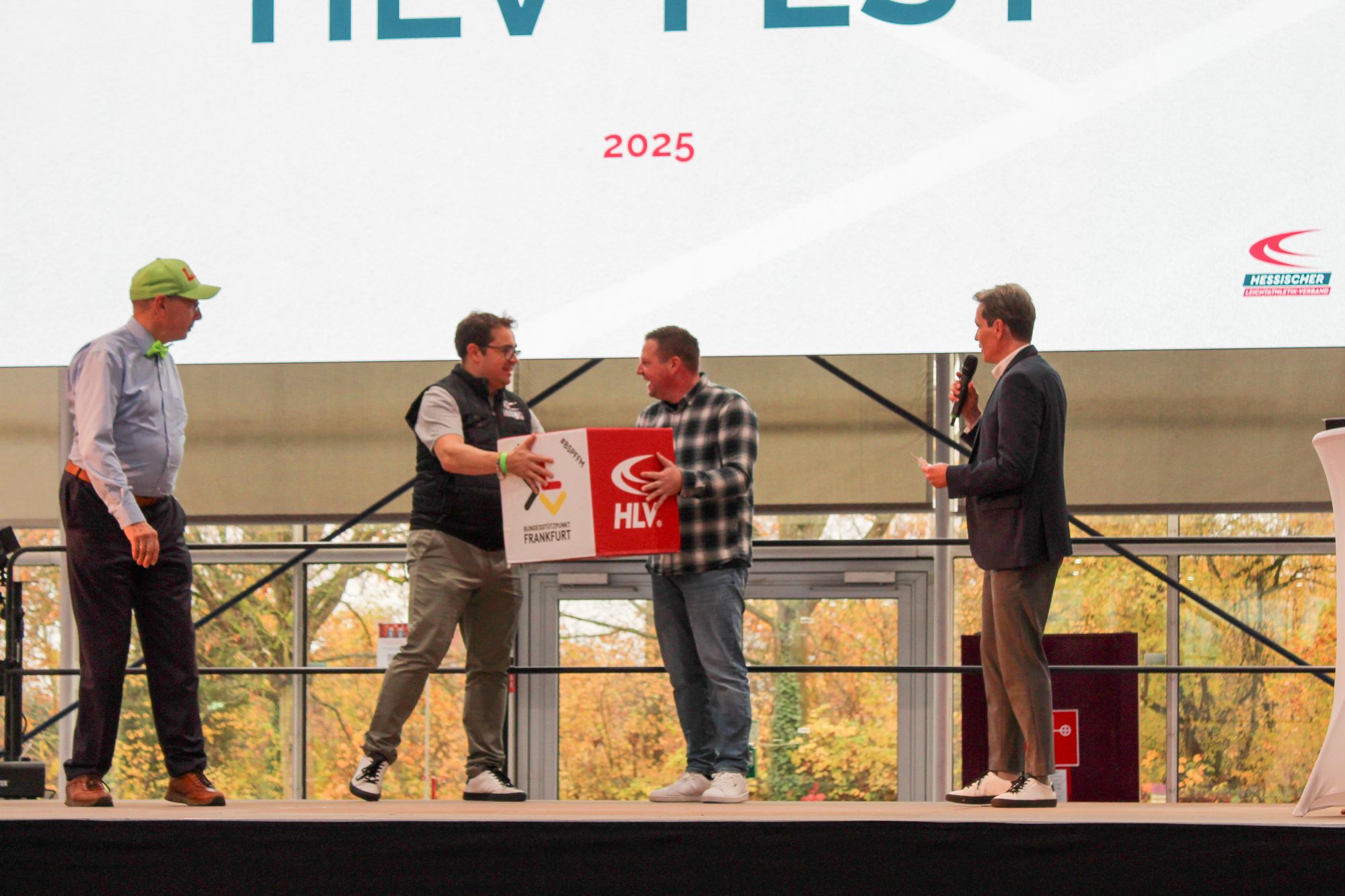Ebenfalls anwesend war Florian Fünffinger, der neue Leiter des Sportamts Frankfurt am Main und Nachfolger von Angelika Strötz. Als Zeichen der Wertschätzung erhielt er einen HLV-Würfel – verbunden mit der Freude über die fortlaufende erfolgreiche Zusammenarbeit.