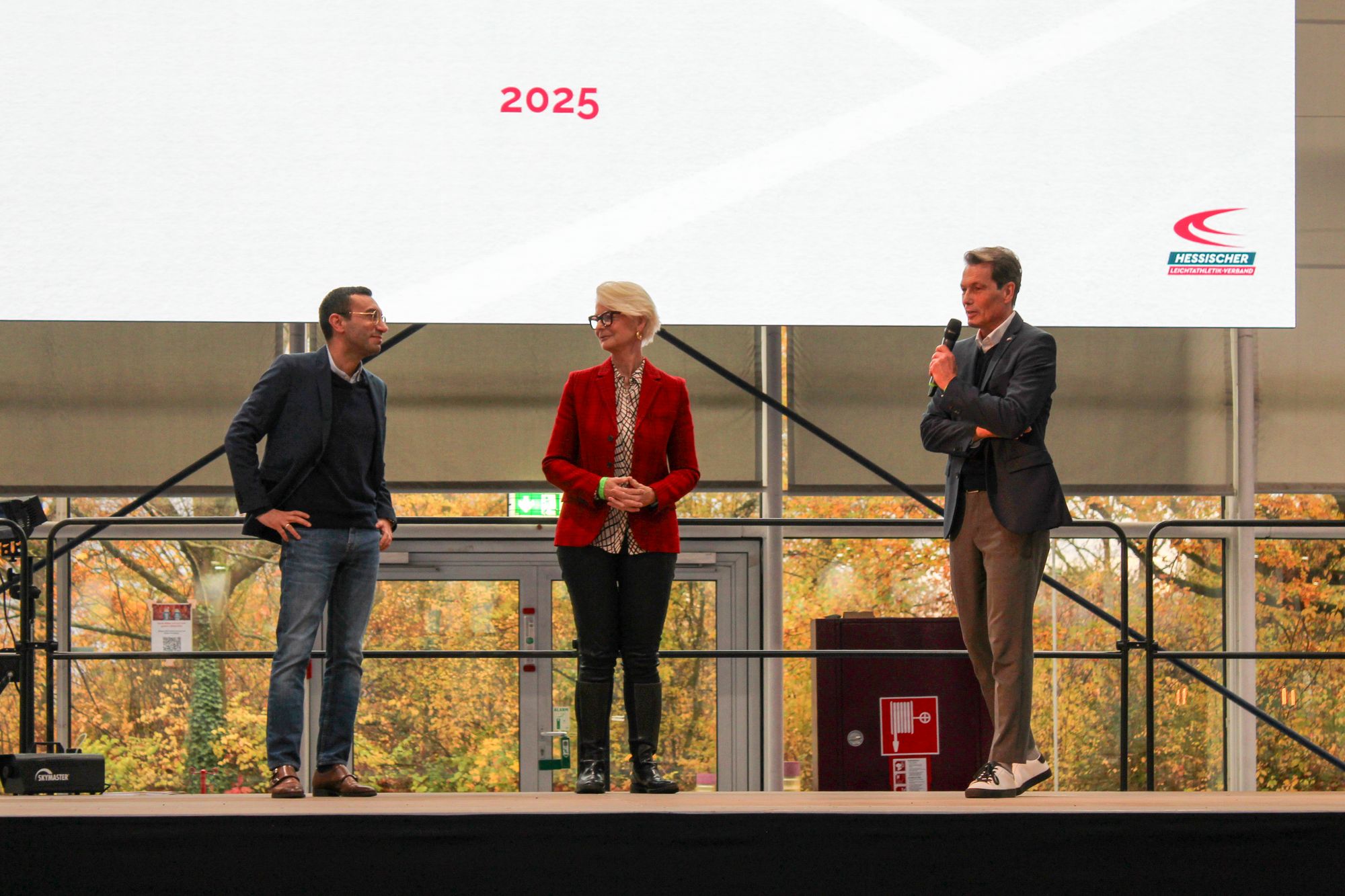 Im Anschluss richtete Ann-Kathrin Linsenhoff, Sportbeauftragte des Landes Hessen, Olympiasiegerin und Trägerin des Bundesverdienstkreuzes 1. Klasse, ihre Grußworte an die Gäste und stellte den offiziellen Förderbescheid vor – ein klares Commitment für die Weiterentwicklung der hessischen Leichtathletik.