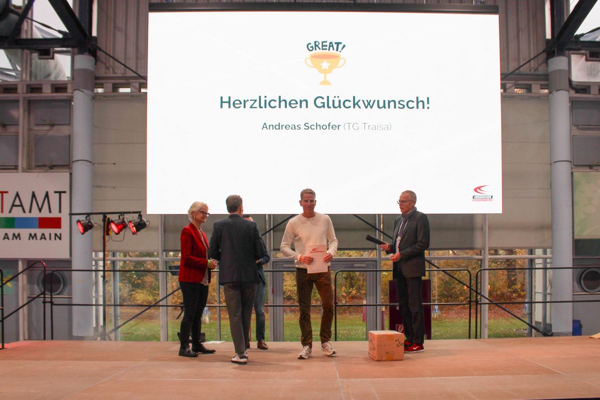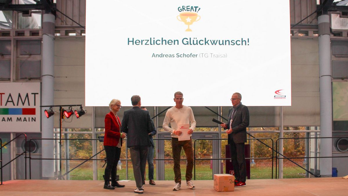 Den Auftakt der Ehrungen machte Andreas Schofer (TG Traisa), der nach über 20 Jahren ohne Leistungssport eindrucksvoll zurückkehrte. Mit DM-Titeln über 60 m und 100 m in der M50 und einer früheren Karriere als Nationalmannschaftssprinter (PB 10,36 s, Stationen u. a. in Wattenscheid und Mannheim) zeigte er, wie zeitlos Talent und Leidenschaft sein können.