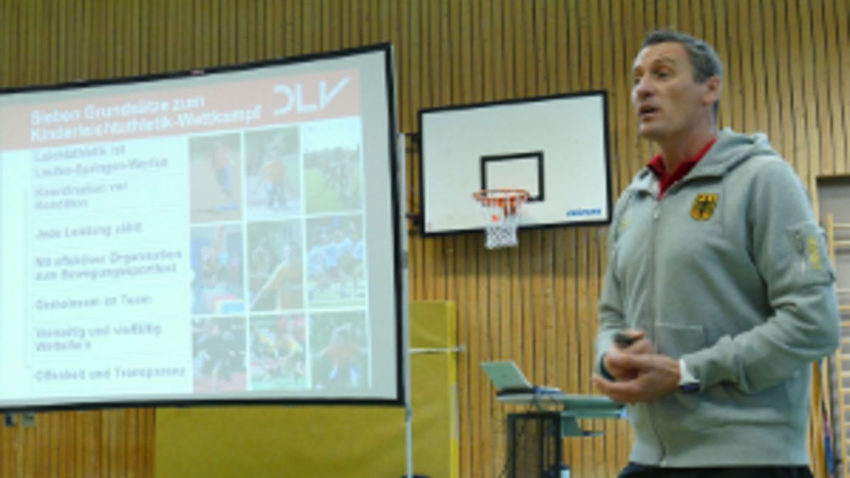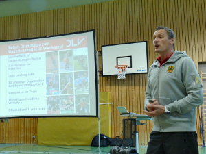 Der Hochschultag des Hessischen Leichtathletik-Verbandes (HLV) an der Universität Marburg stand ganz im Zeichen der Kinderleichtathletik. In jeweils zwei Theorie- und Praxis-Referaten wurde das Wettkampfsystem Kinderleichtathletik des Deutschen Leichtathletik-Verbandes (DLV) als eine zeit- und entwicklungsgemäße Umsetzung der Leichtathletik in Schulen und Vereinen vorgestellt und diskutiert. Dominic Ullrich, im DLV der Verantwortliche für das Jugendlehrwesen, thematisierte in seinem Eingangsvortrag („Strukturwandel in der Leichtathletik“), wie mit Hilfe der Kinderleichtathletik Bildungsnetzwerke entwickelt werden können. Die Stärke der Kinderleichtathletik, die Kombination des Kreativen mit dem Spielerischen und einer gleichzeitigen Disziplinspezifik, stellte Professor Dr. Wolfgang Schöllhorn von der Uni Mainz in Theorie und Praxis vor („Differentielles Lernen im Schulsport“).<ENDE/> Der zweite Praxis-Workshop zu Spielen, Übungen und Wettbewerbsformen in der Kinderleichtathletik wurde von Ullrich (Lauf) sowie den Marburger Dozenten Marko Seeg (Wurf) und Alexander Priebe (Sprung) präsentiert. Unter den über 90 Teilnehmern waren Studenten, Lehrer, Referendare sowie Leichtathletiktrainer, die das Fortbildungsangebot mit 8 Lerneinheiten zur Verlängerung der B- und C-Trainer-Lizenz anerkannt bekamen. Hier geht´s zur Bildergalerie. (tam)