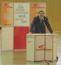 Hochsprung-Kadertrainer Günter Eisinger führte als Moderator souverän durch die gesamte Veranstaltung und konnte in einer kleinen „Talk-Runde“ auch seine erfolgreichste Athletin auf ihr gewohntem Terrain begrüßen: Ariane Friedrich, als Mitglied der ersten Polizeisportfördergruppe Hessen in Sachen Ausbildung in der VfH beheimatet, stellte sich vielen Fragen der neuen und alten Kader-Kollegen. Die Hochspringerin erzählte auch über die Doppelbelastung Leistungssport/ Beruf. Gemeinsam mit ihren Trainern bot sich den Nachwuchstalente aber auch deren Eltern danach die Gelegenheit, verschiedensten Referate zum Thema Leistungssport beizuwohnen, von Dopingprävention (Prof. Dr. Treutlein und Andreas Singler (Uni Heidelberg bzw. Mainz)) über Gesundheitsmanagement (HLV- Physiotherpeut Norbert Müller und der HLV-Förderübersicht (Manfred Kehm/Leitender Landestrainer HLV) bis hin zur Ernährungsberatung (Andrea Stensitzky- Thielemanns/ Olympiastützpunkt Freiburg).
