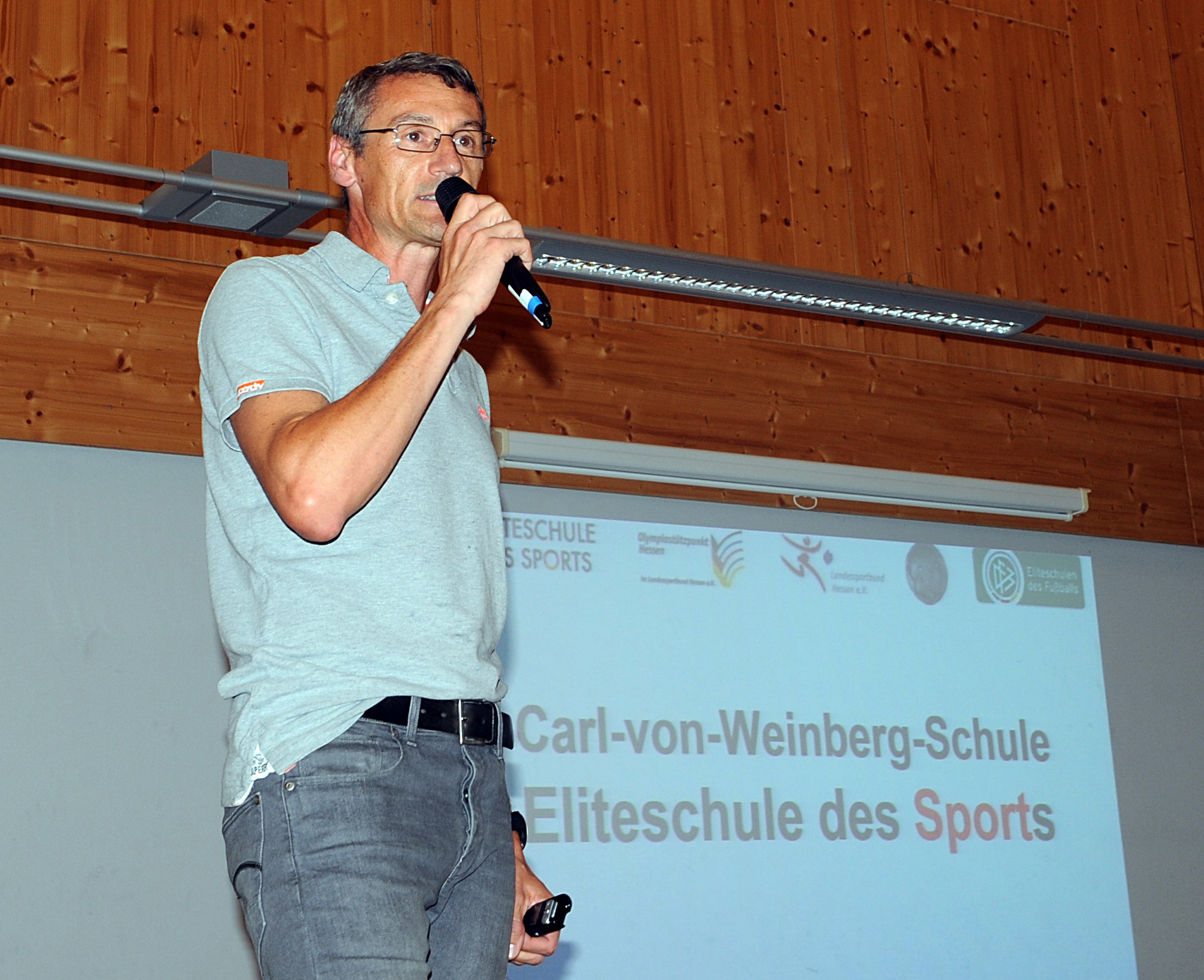 Nach einem Klavier-Vorspiel (Chopin) begrüßte Schulleiterin Nicola Wölbern die Gäste, anschließend sprachen HLV-Vizepräsident Klaus Schuder und Franz-Josef-Kemper, der Vorsitzende des Leichtathletik-Fördervereins Hessen (LFH). Der frühere Weltklasse-Mittelstreckenläufer erläuterte die Unterstützungsmöglichkeiten und warb um neue LFH-Mitglieder. Nach seiner Rede rief HLV-Vizepräsident Leistungssport Martin Rumpf die Landestrainer auf, die Übergabe der Berufungsurkunden übernahm Klaus Schuder.
