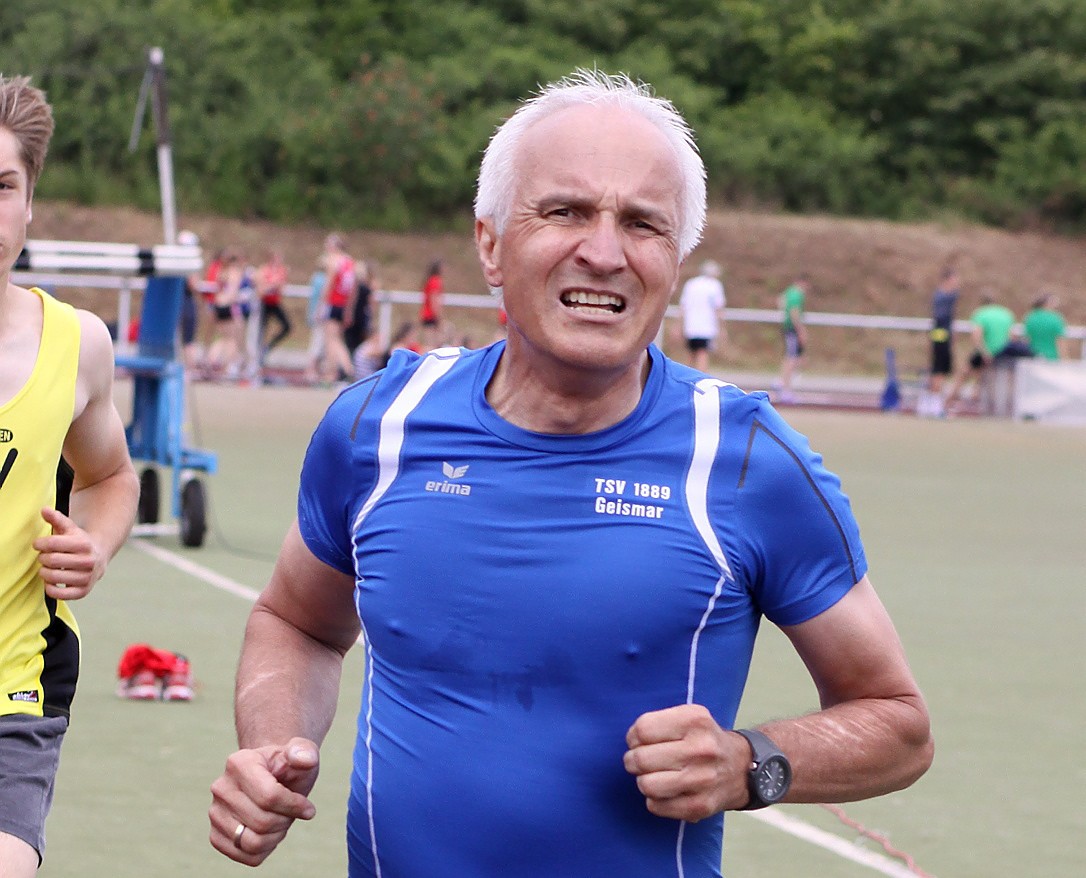 Dagegen gibt es Gold für Günter Kistner (TSV Geismar) nicht alle Tage. Nach Halle und Cross blieb der 69-Jährige in 7:01,29 Minuten über 1500 Meter erstmals auf der Bahn siegreich. In 81,55 Sekunden umrundete Isabell Schulz das Stadionoval der Rhönkampfbahn. Für die Co-Trainerin des TSV Geismar war es bereits der zweite Sieg über 400 Meter. Als Achte mit 6,57 Meter erreichte Monika Groh (MT) den Endkampf im Kugelstoßen der W 50.