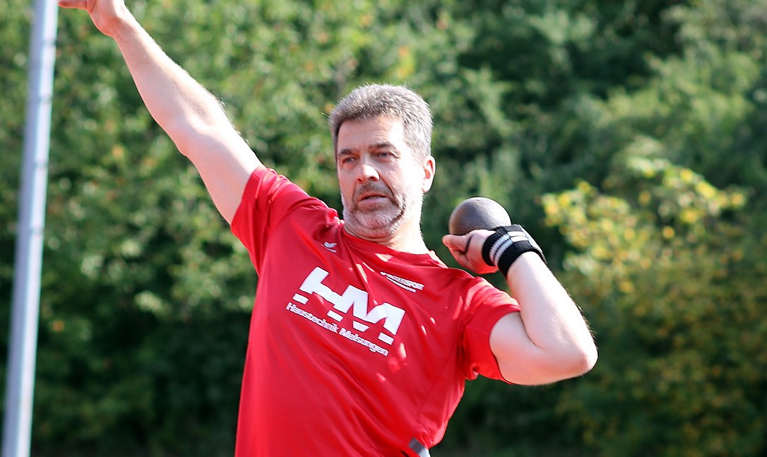 Freude pur bei Routinier Norbert Weinreich (MT). Der IT-Analyst aus Melsungen ist der einzige nordhessische Linkshänder und Drehstoßtechniker im Kugelring und gewann mit 10,11 Meter (6 Kg) den Wettbewerb der M 55. Bereits am Samstag strebt der EM-Achte von Madrid 2018 bei den ausgelagerten Wettbewerben im Diskuswerfen in Selters den nächsten Titel an.