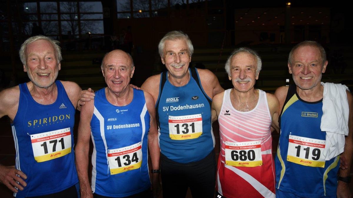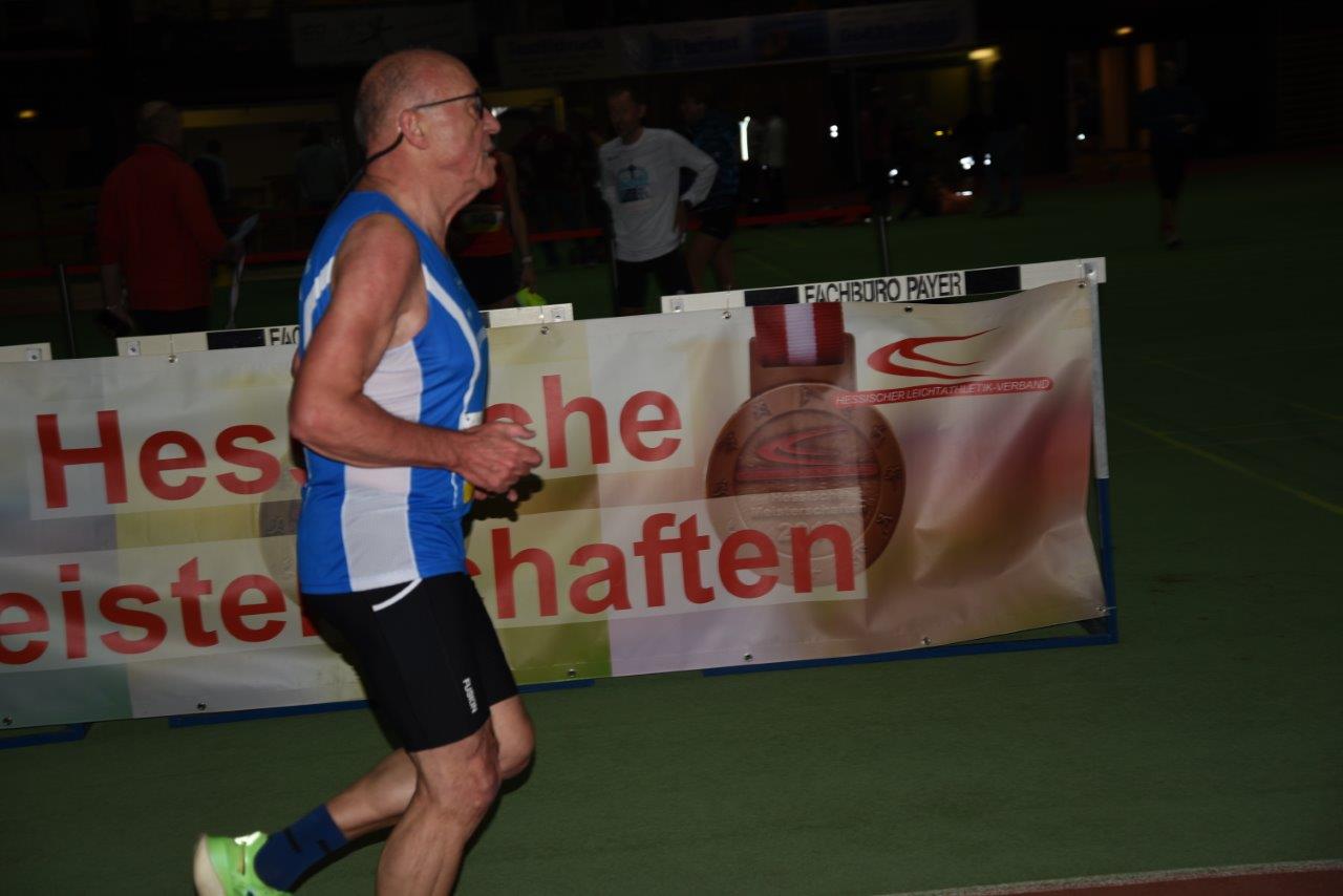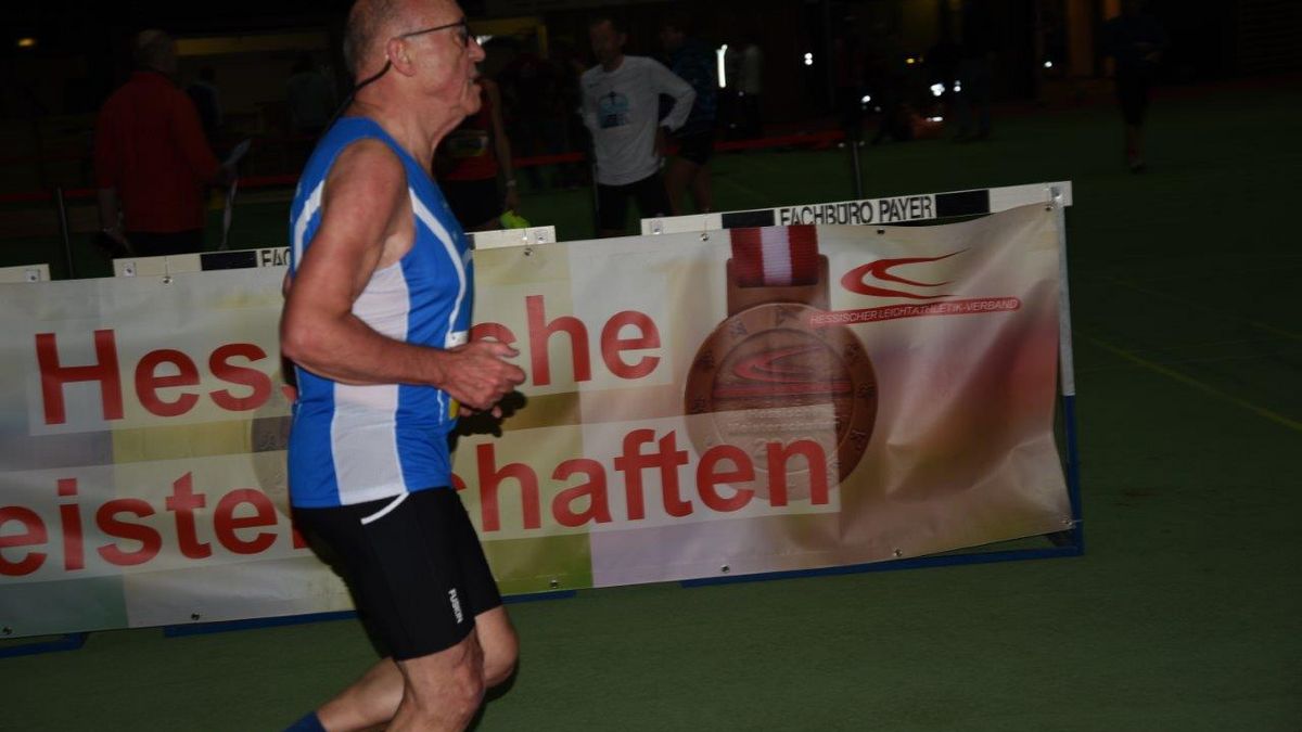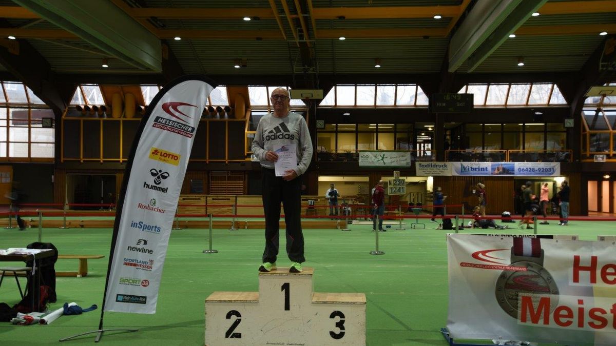 W70. Keine hat in den letzten drei Jahrzehnten bei Hessen- oder Deutschen Meisterschaft so viele Titel gesammelt wie die Anzefahrerin Helga Schüßler (TSV Kirchhain). Auf die Frage nach der Anzahl meinte sie, dass sie selber erst einmal nachsehen müsse. Mit den drei Titeln von Stadtallendorf sind es sage und schreibe 91 Titel. Bei ihrem Heimspiel in der Trainingshalle holte sie sich einen Doppelsieg im Sprint über 60m in 9,56 sec. und über 200 Meter in 33,06 seck. Als Zugabe gewann sie noch im Weitsprung mit 3,80 Metern. TSV Trainerin Jutta Eisenberg nahm selbst noch einmal in der W75 die 3 kg-Kugel in die Hand und stand mit Silber auf dem Podest. Alle Ergebnisse auf HLV oder DLV