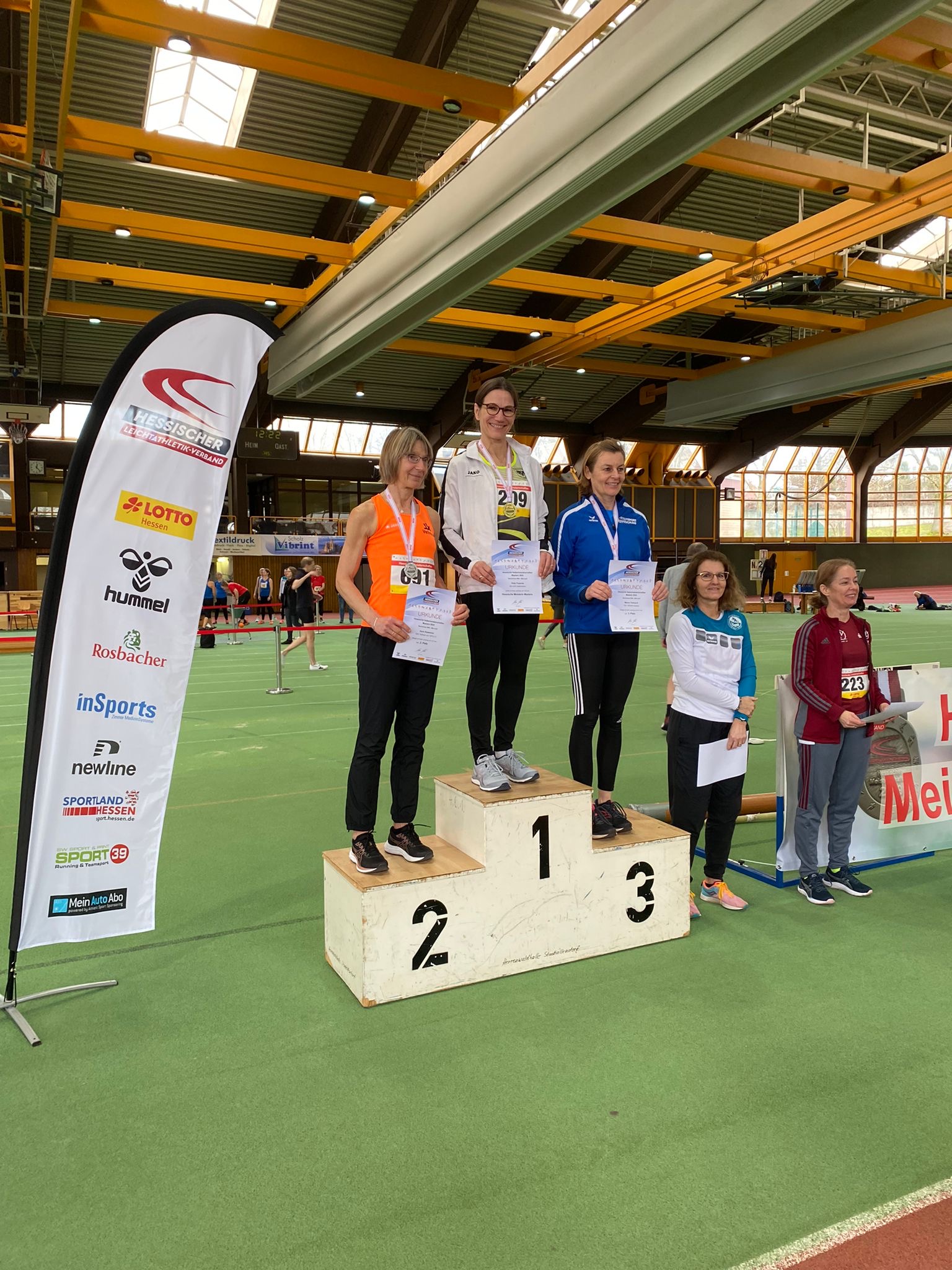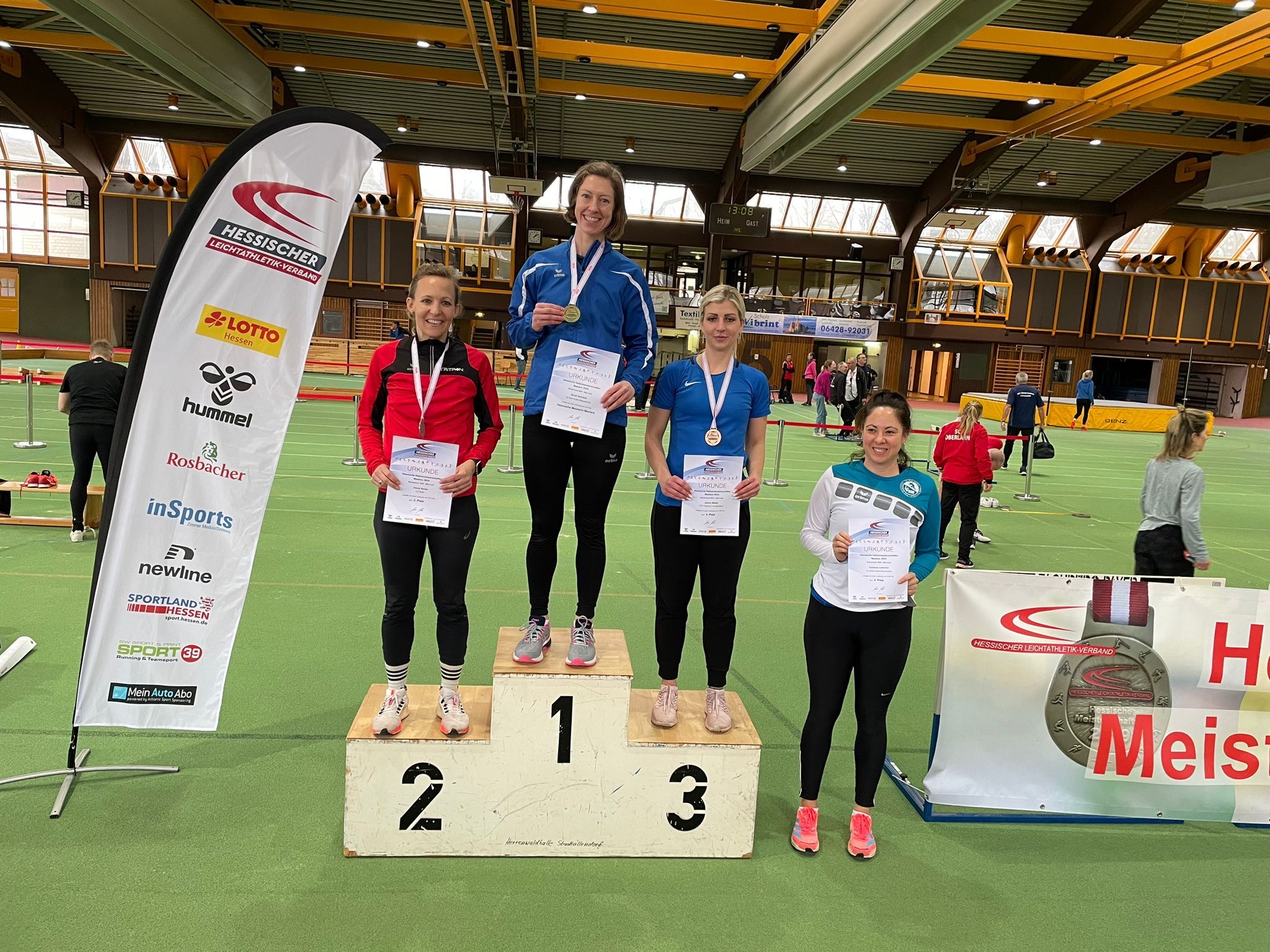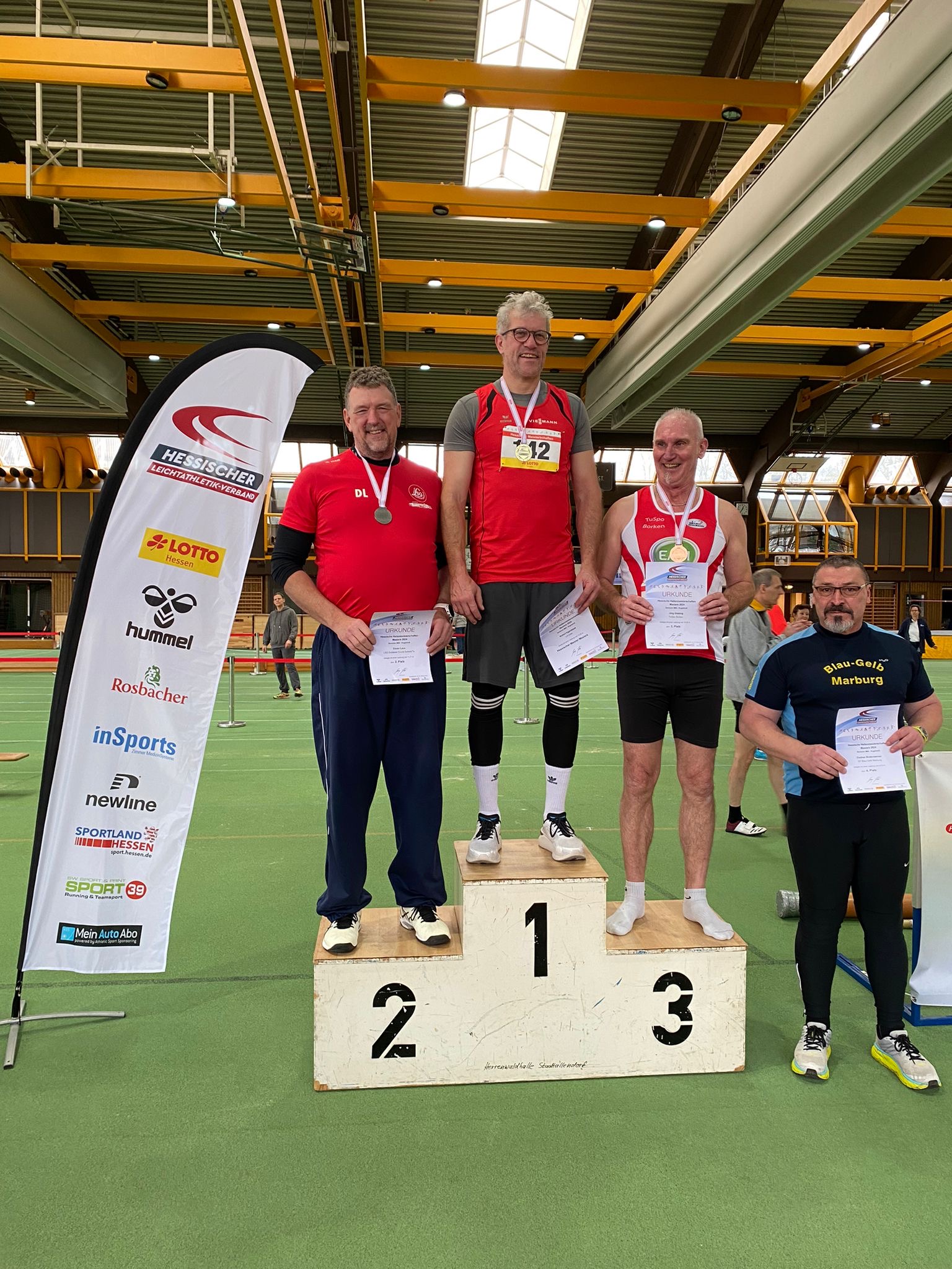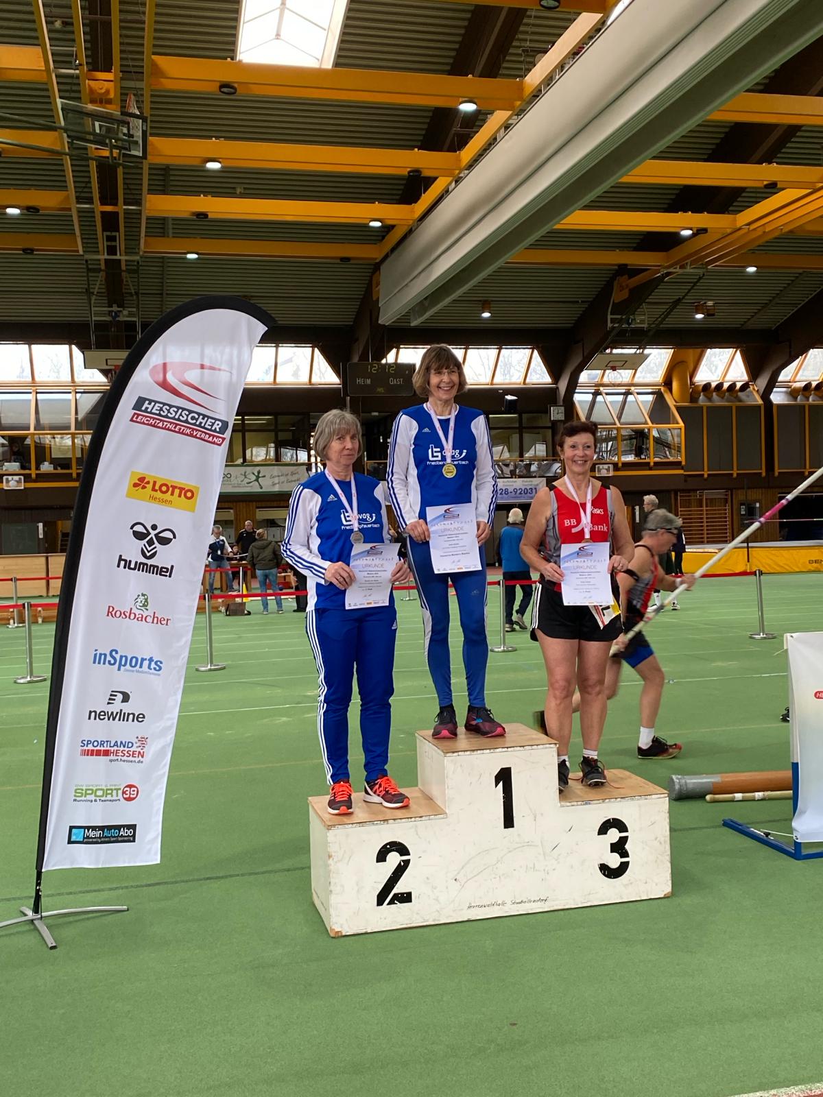 In der Herrenwaldhalle in Stadtallendorf trafen sich am Sonntag, den 18.2.2024, 245 Männer und Frauen der Masters zu den Hessischen Hallenmeisterschaften der Masters. Ausgeschrieben waren insgesamt 13 Disziplinen von 60 m bis 3000 m, 60m Hürden, 4x1 Runde Staffel und die technischen Disziplinen Hochsprung, Stabhochsprung, Weit- und Dreisprung sowie das Kugelstoßen.