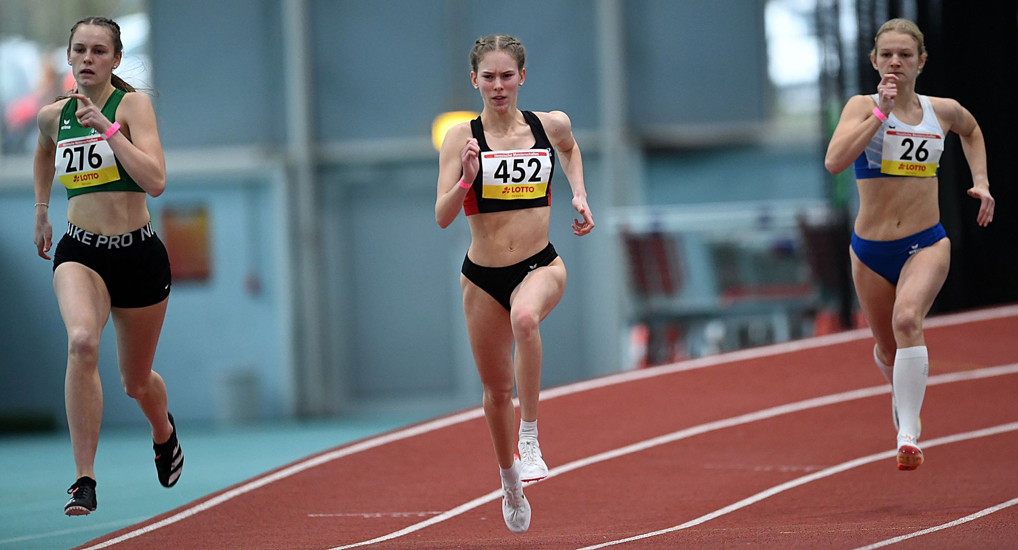 Holly Okuku, Masha-Sol Gelitz und Jana Becker drücken dem Geschehen bei den Hallen-Titelkämpfen der Altersklasse U18 mit Top-Leistungen ihren Stempel auf