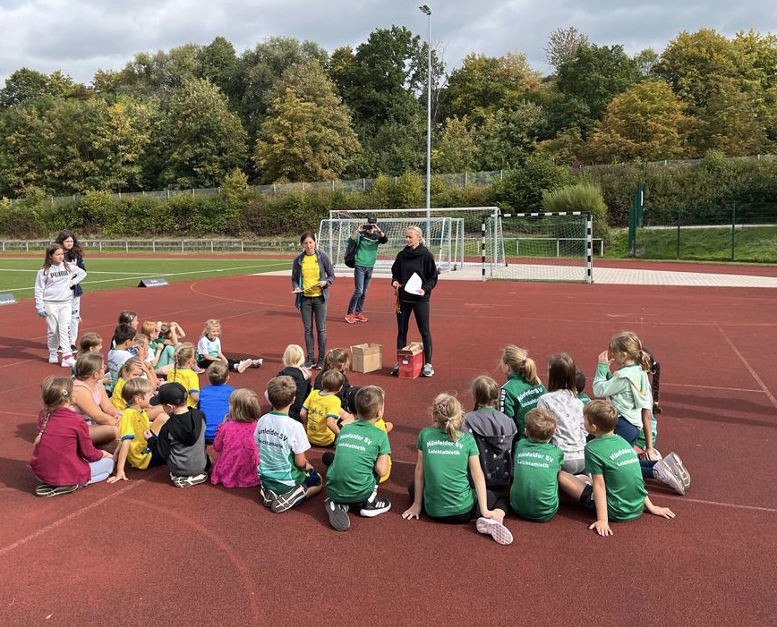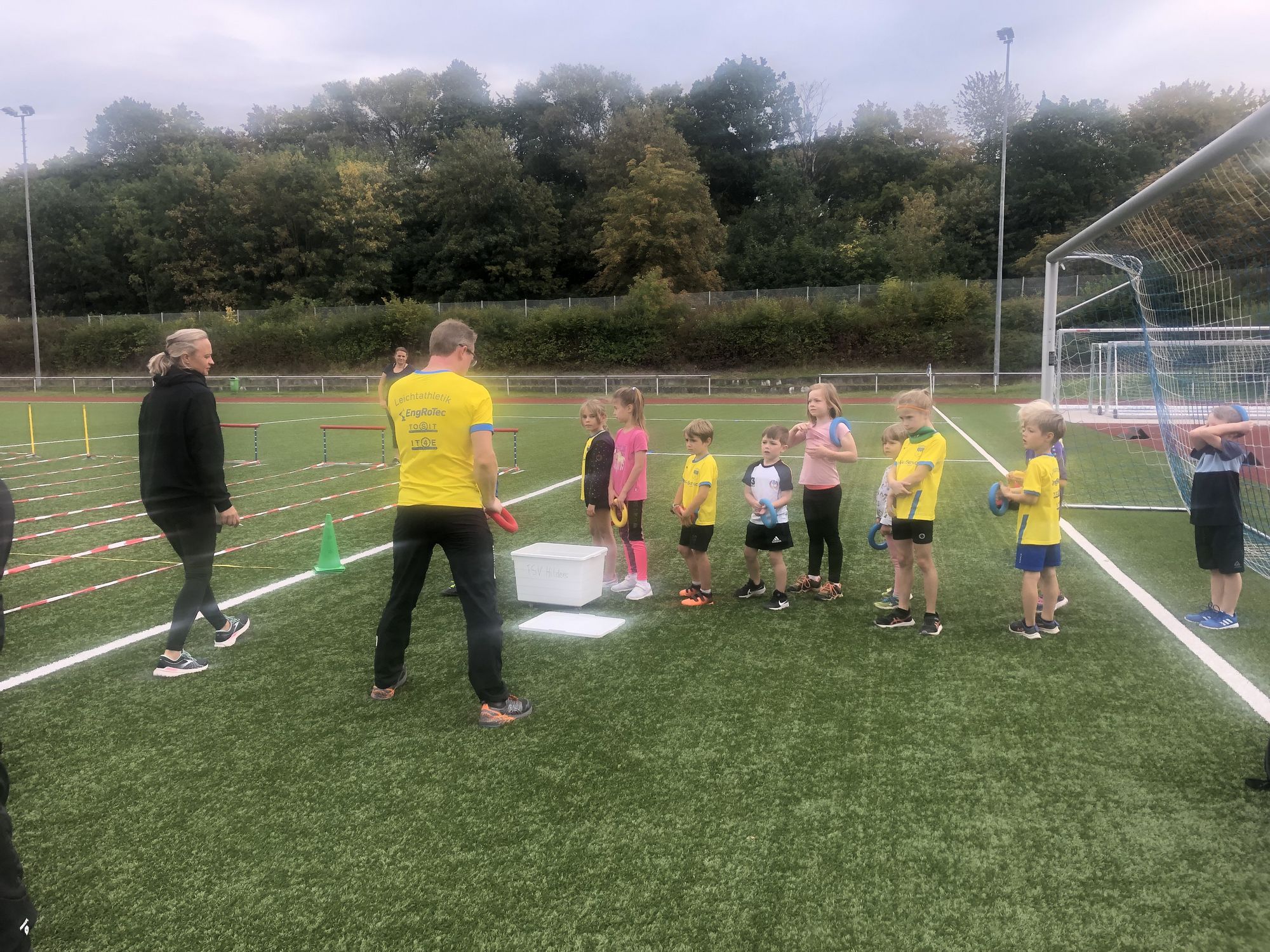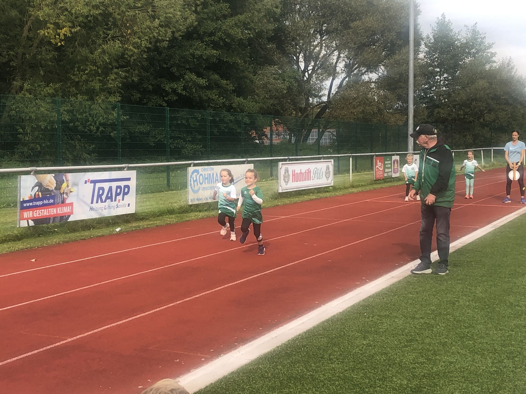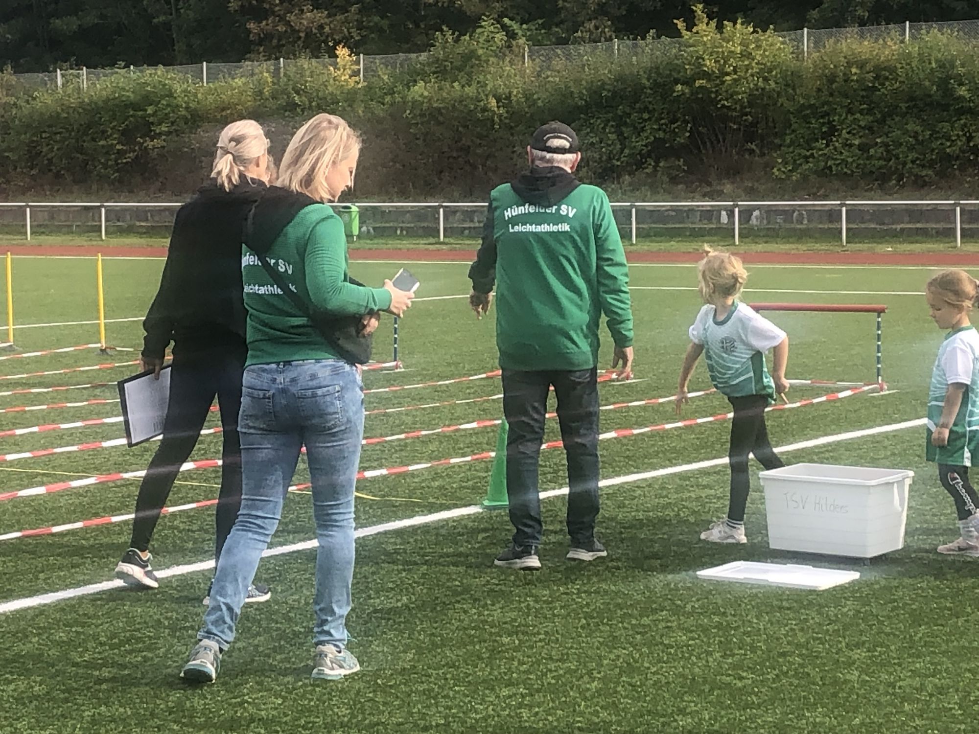 Einen schönen kleinen aber feinen Wettkampf der Altersklasse U8 bei sonnigen Wetter konnten wir am 3. Oktober in Hilders stattfinden lassen. Der Hünfelder SV stellte zwei Teams, der TSV Hilders ging mit einem vollbesetzten Team an den Start. Es mussten 4 Disziplinen absolviert werden: 30m Sprint, Drehwurf, Zielweitsprung und zum Schluss die 400m-Biathlonstaffel. Bis zur letzten Disziplin führte der TSV Hilders, doch nach dem Biathlon drehte sich das Ergebnis und das Team Hünfelder SV 1 gewann knapp mit einem Punkt Vorsprung. Für einige Kids war dies der erste Wettkampf gewesen, daher war die entspannte Atmosphäre ganz nett. Wir hoffen aber, dass im nächsten Jahr sich wieder mehr Teams anmelden. Ungewöhnlich, wenn man bei einem Wettkampf sagen kann: Das Wettkampfbüro war völlig unterfordert und holte die Ergebniszettel an den Stationen persönlich ab