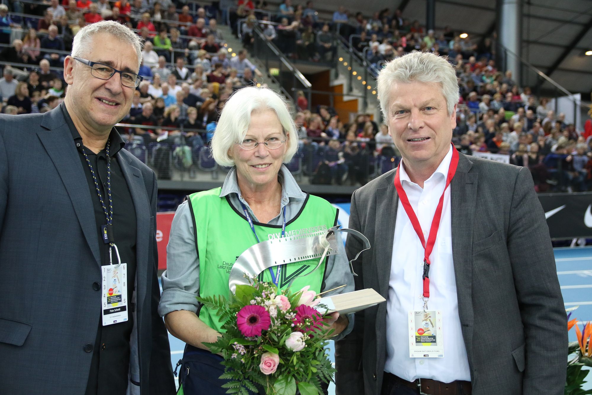 Die Fotografin Iris Hensel ist bei der Hallen-DM in Leipzig mit dem DLV-Medienpreis geehrt worden. Die Auszeichnung überreichten DLV-Präsident Jürgen Kessing und Mediendirektor Peter Schmitt. Das DLV-Präsidium hatte Iris Hensel diesen Preis zuerkannt, da sie sich seit Jahrzehnten in ihrer fotografischen Arbeit nicht nur um die Spitzenathleten, sondern auch um den Nachwuchs kümmert.