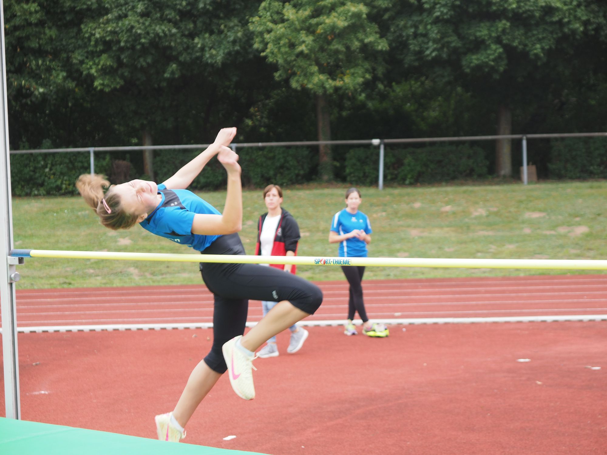 Hochspannend war die Entscheidung im Hochsprung. Hier lieferte sich Schmidt einen Zweikampf mit Lina Henrici (TSV Lippoldsberg). Beide überquerten 1,34 Meter, aber während Schmidt das im ersten Versuch schaffte, benötigte Henrici zwei Sprünge und musste sich mit Silber zufrieden geben.