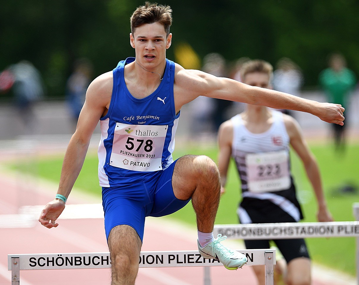 Joshua Abuaku und Eileen Demes lassen in Pliezhausen mit flotten Zeiten über die „krummen“ 300-Meter-Hürden aufhorchen