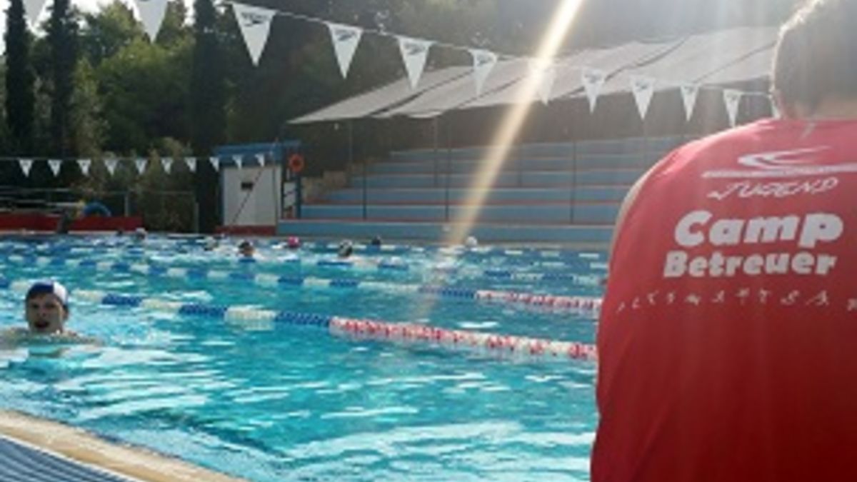 Nach einem sonnenreichen Start mit Training und Kulturprogramm in Griechenland bot uns die zweite Hälfte des Camps jede Menge sportliche Herausforderungen. An unserem fünften Camp-Tag stellten wir vormittags unser Hürden- und Speerwurf-Talent unter Beweis. Zwischen felsigen Bergen und rauschendem Meer trainierten wir unter schönen Bedingungen. Nachmittags ging es dann hart zur Sache. Im Sportcamp wurde auf dem Beachvolleyballfeld ein Zirkeltraining absolviert. Liegestütze, Ausfallschritte und viele weitere Übungen standen dabei auf dem Programm und wurden von motivierender Musik und Anfeuerungsrufen unterstützt. Am Abend befassten wir uns mit dem Thema Olympische Werte. In Teamarbeit kreierten wir zusammen unseren eigenen Olympischen Eid, der am folgenden Tag bei einer griechisch-deutschen Camp-Olympiade gesprochen werden sollte.<ENDE/> Dieser folgende Eid beinhaltet die Werte, welche für uns besonders wichtig sind: