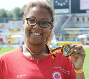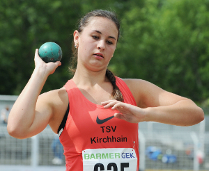 Überraschungen im Kugelstoßen: Nicht die U18-Weltmeisterin Julia Ritter (SuS Oberaden/16,96) holte sich den Titel, sondern Yemisi Ogunleye (MTG Mannheim/17,31 Meter), die in Kolumbien ebenfalls WM-Luft geschnuppert hatte und in Jena mit Bestleistung gewann. Ganz erfreulich aus hessischer Sicht: der dritte Platz von Patrizia Römer vom TSV Kirchhain, mit Bestleistung und neuem Landesrekord mit der 3-Kilo-Kugel dazu. 16,60 Meter, ganze 139 Zentimeter über ihrer alten Bestleistung. Mit 15,21 Metern nahm Römer vor den Meisterschaften den zehnten Rang in der deutschen Bestleistung ein. Nun ist sie Vierte hinter Ritter (18,53), Ogunleye (17,31) und Emely Groß (SC Magdeburg/16,68), die in Jena fehlte. Die Wertigkeit von Patrizia Römers Leistung zeigt sich an einem einfachen Vergleich: Die Hessin übertraf die Qualifikationsleistung für die U18-WM um 60 Zentimeter und den alten Hessenrekord von Laura Jokeit (TSV Frankenberg/15,90) aus dem Jahr 2012 sogar um 70 Zentimeter.