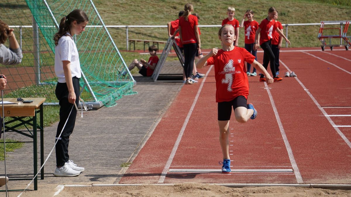 Es geht weiter Schlag auf Schlag bei „Jugend trainiert für Olympia“! Letzte Woche der Regionalentscheid „Leichtathletik, Wettkampfklasse II und III“ in Kassel im großen Auestadion, und heute dann der Regionalentscheid „Leichtathletik, Wettkampfklassen IV“ auf der Rhönkampfbahn in Hünfeld. Erneut unterstützt von der Leichtathletik-Abteilung des Hünfelder SV erlebten die teilnehmenden SchülerInnen über 4,5 Stunden hinweg einen reibungslos verlaufenden Wettkampf bei erneut richtig gutem Wettkampfwetter. Und als besonderes Bonbon hatten sich die Verantwortlichen der Leichtathletik-Abteilung des Hünfelder SV etwas ganz besonderes einfallen lassen; sie hatten die Stadion-Cross-Strecke, die u.a. auch bei den Hessischen Meisterschaften der KiLa U12 zu bewältigen ist, für den Regionalentscheid komplett hergerichtet. Und Schüler wie Lehrer waren von der Stadion-Cross-Strecke begeistert; das war kein Regionalentscheid nach Art "nullachtfünfzehn".