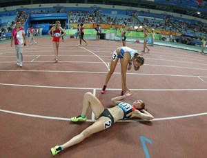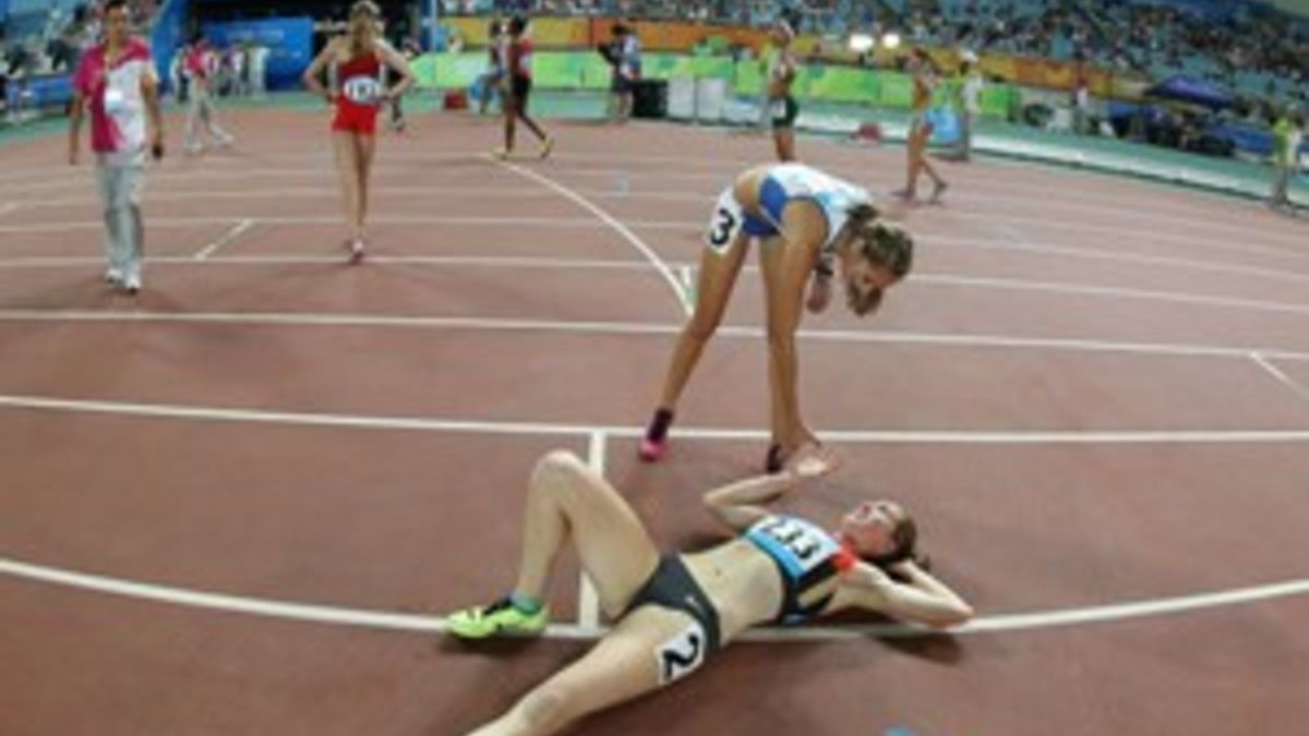 Auf dem Weg zu einer Medaille bei den Olympischen Jugendspielen in Nanjing (China) ist Eileen Demes vom TV Neu-Isenburg im 400-Meter-Hürdenlauf eingangs der Zielgeraden gestürzt. Die 16 Jahre alte Schülerin fädelte mit dem linken Schwungbein in die Hürde der Nebenbahn ein, kam zu Fall, rappelte sich wieder auf, erreichte das Ziel aber nur als Letzte. Den Titel gewann die Südafrikanerin Gezelle Magerman in 57,91 Sekunden, Zweite wurde Michaela Peskova aus der Slowakei (58,26), auf den dritten Platz lief die Dänin Anne Sofie Kirkegaard (58,60). Eileen Demes hatte im Vorlauf ihren persönlichen Rekord auf 58,68 Sekunden verbessert und damit die zweitschnellste Zeit erreicht. Zuvor stand die junge Hessin mit 58,92 Sekunden in den Bestenlisten, erzielt als Viertplatzierte der U18-WM 2013.<ENDE/>