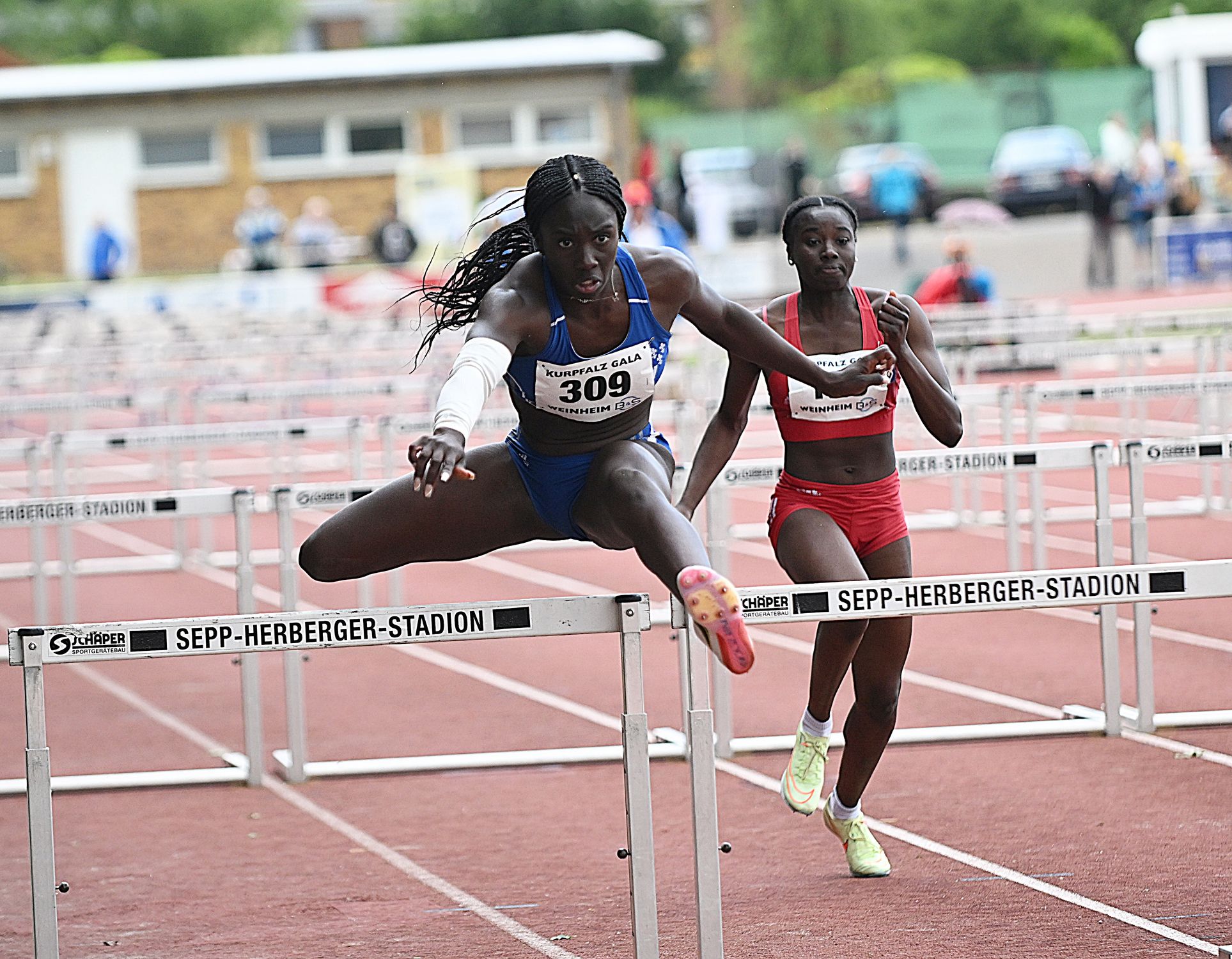 Hawa Jalloh (Wiesbadener LV) ist über die 100 Meter Hürden in die internationale Weltspitze der Altersklasse U20 vorgeprescht. Das große Talent aus der Landeshauptstadt war als Siegerin ihres Vorlaufes in 13,72 Sekunden noch ganz moderat unterwegs. Im Frauen-Finale zauberte der Schützling von Thorsten Groß phantastische 13,35 Sekunden auf die Bahn, ist damit aktuell auf dem fünften Platz der Weltjahresbestenliste und ist somit eine klare Anwärterin auf einen Finalplatz bei der WM in Cali. Bei den Jungs der U20 setzte sich Sieger Aaron Giurgian (Sprintteam Wetzlar) mit 13,63 Sekunden an die Spitze der deutschen Bestenliste.