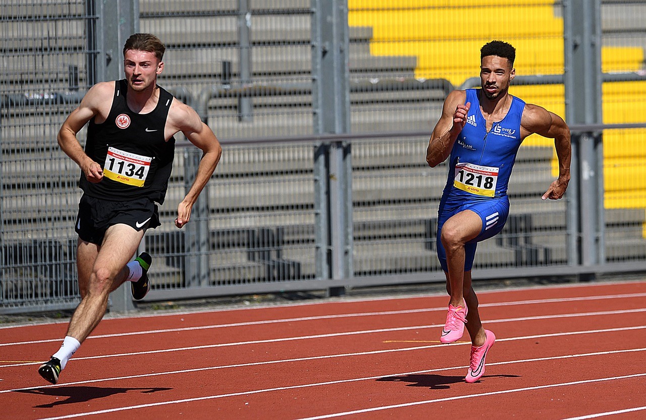 100 Meter: Zuerst fehlte der Name Kevin Kranz in der ersten Version der Meldeliste. In der finalen Version war er dann aber dabei. Der 24-Jährige gewann dann mit 10,46 Sekunden auch sicher seinen Vorlauf. Im Finale war Kranz bei Windstille mit 10,44 Sekunden einen Tick schneller unterwegs und machte mit Elias Goer (10,64 Sekunden) einen Doppelsieg für das Sprintteam Wetzlar perfekt. Kevin blieb in beiden Rennen im Bereich seiner Jahresbestzeit, die 10,41 Sekunden steht. Bei den nächsten Starts besteht also reichlich Luft nach oben, um sich im DLV-Ranking weiter nach vorne zu arbeiten. Die Bronze-Medaille in Kassel holte sich Philip Hennemuth (Eintracht Frankfurt/10,69 sec.). Dahinter blieb noch drei weitere Sprinter unter elf Sekunden. Angeführt wurde diese Truppe von Jonas Hennig (TSG Friedrichsdorf/10,83 sec.). Dahinter folgten die beiden Eintrachtler Lennard Wagner (10,83 sec./VL 10,71 sec.) und Nils Keßler (10,90 sec.).