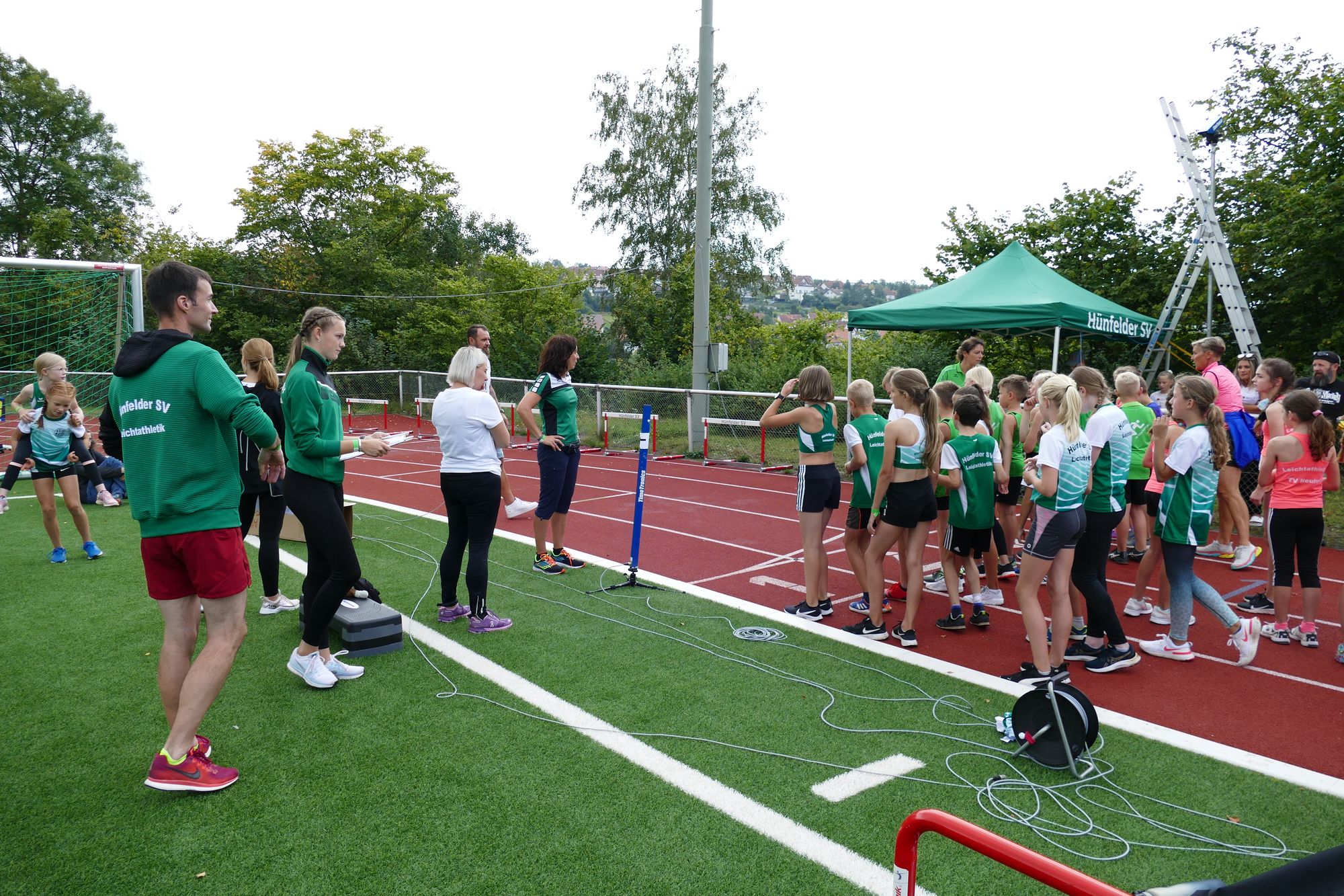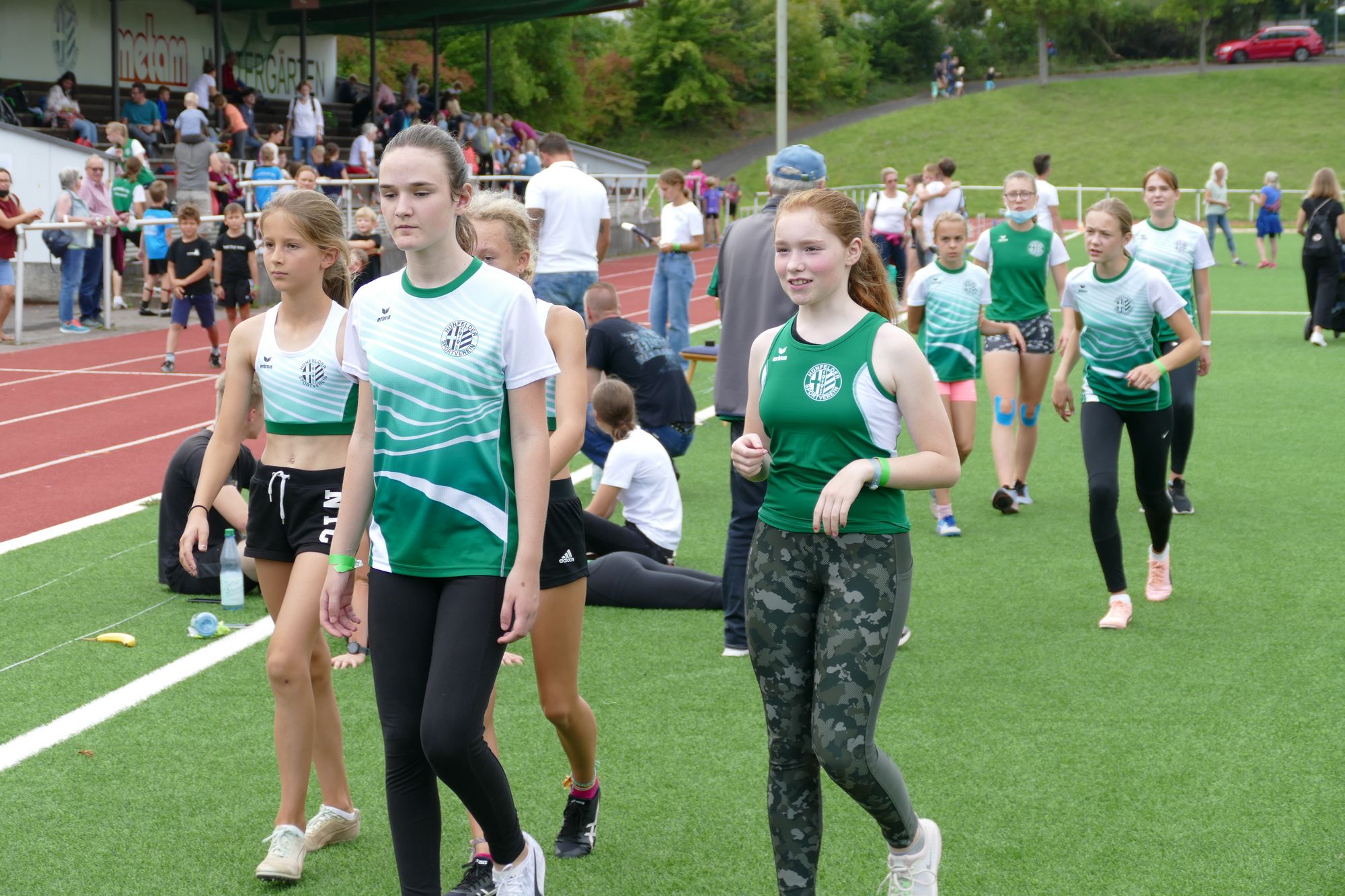 Der Wettkampf war in 3 große Zeit-Blöcke gegliedert. 277 Athleten aus 11 Vereinen waren am Start; davon in der KiLa 237 Kinder in 28 Mannschaften. Der Wettkampf war in 3 große Zeit-Blöcke gegliedert. Wegen CORONA gab es eine Eingangskontrolle – Stichwort „3G“. Jeder im Stadion Anwesende hatte ein Einlassbändchen am Arm. So konnten man erstmals sehen wie viele Menschen – Athleten, Betreuer, Helfer, Besucher, … – sich in Summe im Laufe des Tages auf der Rhönkampfbahn eingefunden haben. Die Zahl: „755 Personen“; ist schon beachtlich! Der Anteil der „Getesteten“ war dabei erstaunlich gering, ein höherer Anteil war erwartet worden! Und selbstverständlich, alles lief unter Einhaltung der CORONA-Regelungen ab!