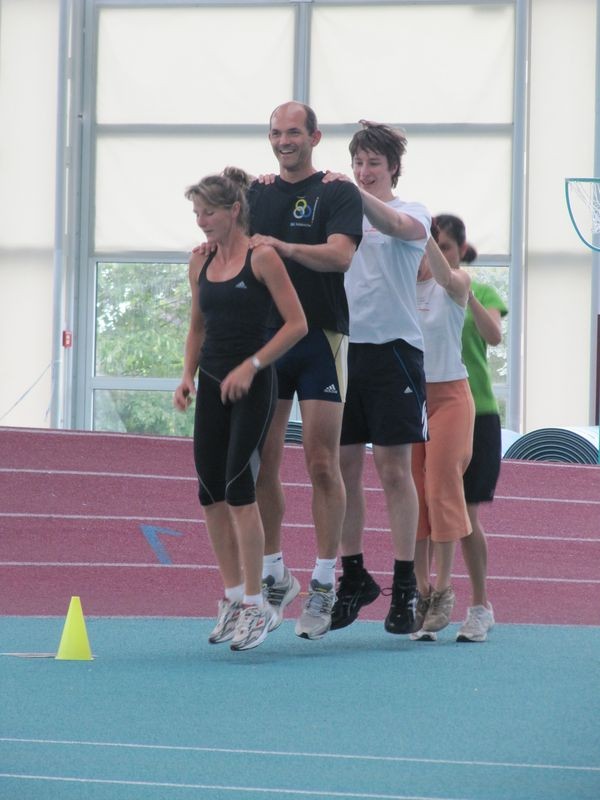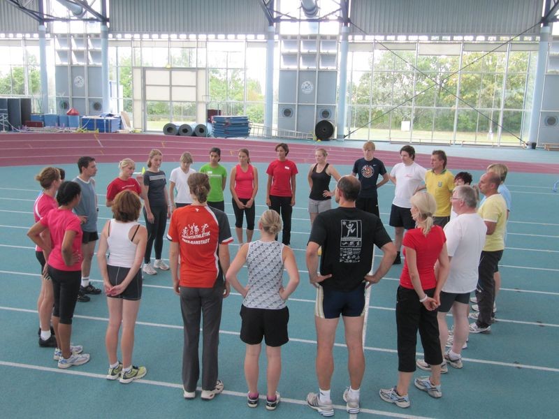 Am 28./29. August trafen sich 23 motivierte Teilnehmer aus ganz Hessen in der Leichtathletikhalle in Frankfurt-Kalbach um unter der Leitung von Dominic Ullrich (DLV Projektgruppe „Kinder in der Leichtathletik“) und Yvonne Ripper (HLV- Jugendwartin) die Ausbildung zum Trainerassistent Kinderleichtathletik zu absolvieren. Nach einer theoretischen Einführung, in der u.a. auf die geänderte Lebens- und Entwicklungssituation von Kindern eingegangen wurde, ging es zum praktischen Teil in die Halle. Dabei standen Spiele und Übungen zur Entwicklung und Verbesserung der koordinativen und konditionellen Fähigkeiten (Ausdauer, Kraft, Schnelligkeit und Beweglichkeit) mit Hilfe der Bewegungsbereiche Laufen, Springen und Werfen im Vordergrund, die mit vollem Einsatz, viel Elan und Gelächter ausprobiert wurden. Vor allem die Vielzahl an Möglichkeiten auch mit einfachen Mitteln wie alten Fahrradreifen, leeren Joghurtbechern, Bananenkisten oder ausrangierten Tennisbällen überzeugte die interessierte Teilnehmergruppe. „Unsere beiden Referenten gestalteten die verschiedenen Praxis- und Theorieteile so kurzweilig, dass die beiden Tage wie im Flug vergingen“, beschrieb lachend eine Teilnehmerin und ergänzte: „Die Veranstaltung war rundherum gelungen und wir freuen uns, die Theorie in die Praxis umzusetzen“. Britta Kring (Teilnehmerin)