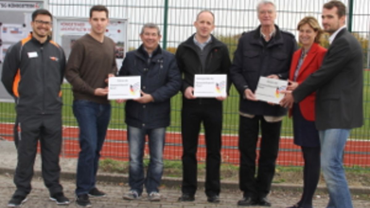 Der aufstrebende Königsteiner Leichtathletikverein (KLV) ist für seine leistungssportförderliche Infrastruktur ausgezeichnet worden. Die Ehrung nahmen der Landessportbund Hessen (lsb h) und der Olympiastützpunkt (OSP) Hessen vor. Um Top- und Nachwuchsathleten passende Trainingsbedingungen zu bieten und für die Trainer ein optimales Arbeitsumfeld zu schaffen, kooperiert der Königsteiner LV mit dem benachbarten Sportpark Königstein, der dort angesiedelten Physiotherapie sowie dem Gastronomen „Miro’s“. Der Verein, seine Partner und die Trainingsanlagen in der Burgstadt im Taunus dürfen sich ab sofort offiziell „Partner und Trainingsstätte des Olympiastützpunktes Hessen im Landessportbund Hessen e. V.“ nennen.<ENDE/> Die Auszeichnung nahm KLV-Vorsitzender Dr. Tobias Siebeneicher aus den Händen von Lutz Arndt, Vizepräsident Leistungssport im lsb h, und OSP-Leiter Werner Schaefer am vergangenen Freitag entgegen. Für Lutz Arndt passt das Konzept des noch jungen KLV zur „aktuellen Leistungssportoffensive des Landessportbund Hessen“. Werner Schaefer lobte vor allem die „qualitativ sehr gute Arbeit“ des Taunusvereins, der ein Umfeld geschaffen habe, „in dem die Athleten hervorragend aufgehoben sind“.