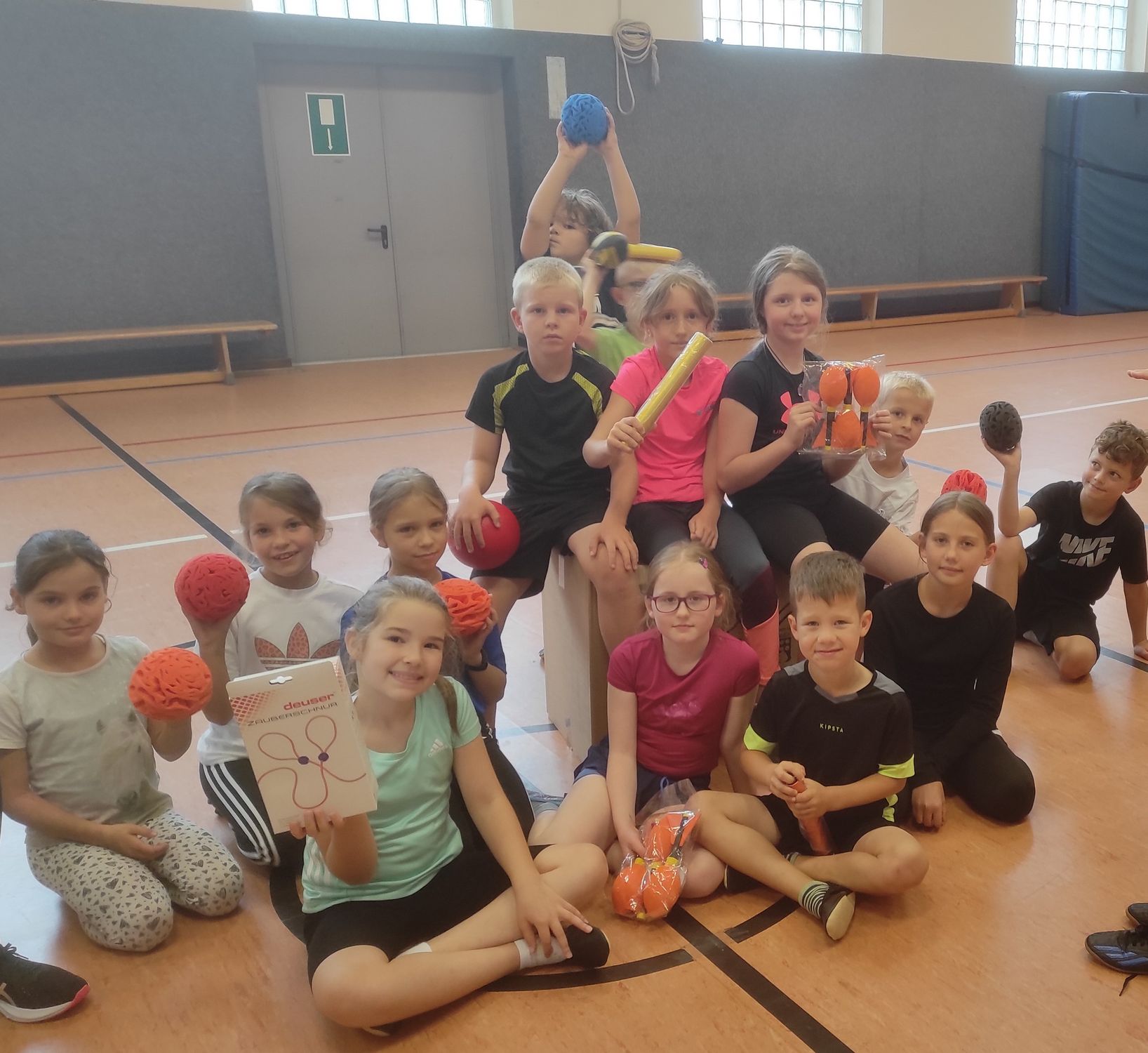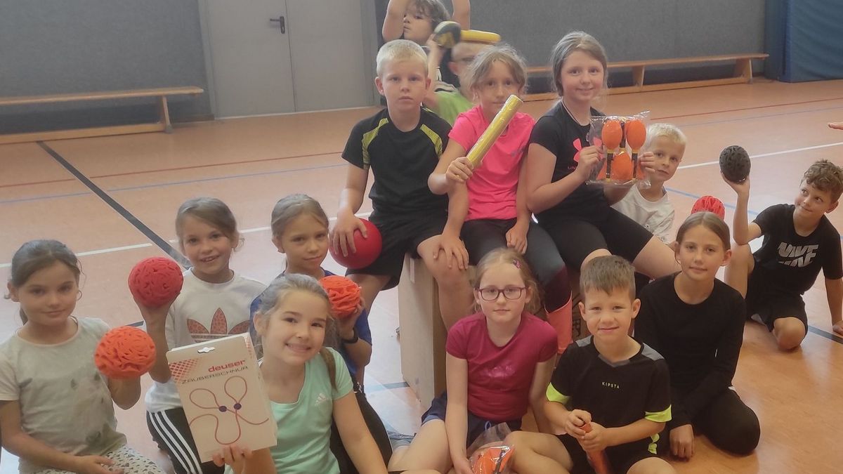 In der vereinseigenen Jahnturnhalle des „TVD“, die seit Jahren für die Sport AG Stunde der GS Manderbach genutzt wird, wurden die Materialien auch gleich begeistert ausprobiert.