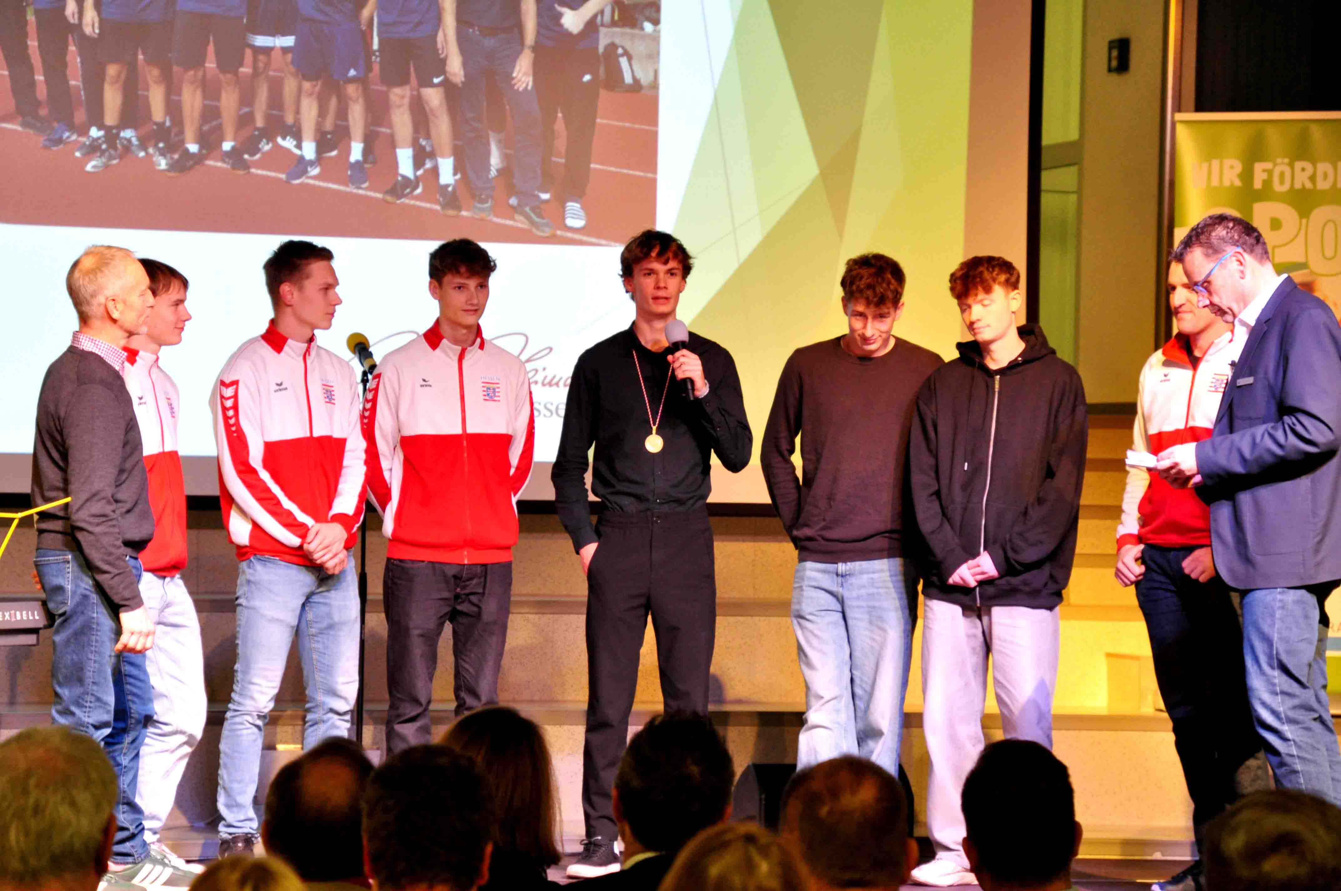 Witzenhausen. Am vergangenen Freitag fand der Kreisehrentag in der Johannisbergschule in Witzenhausen statt. In der gemeinsam von Kreisverwaltung und Sportkreis Werra-Meißner organisierten Veranstaltung wurde auch die Jungen-Mannschaft der Rhenanus-Schule aus Bad Sooden-Allendorf auf die Bühne gebeten. Die Abordnung der Mannschaft, begleitet von ihren beiden Trainern Thomas Weise und Andreas Niedenbrück, erhielt die Auszeichnung für ihren Sieg beim Landeswettbewerb "Jugend trainiert für Olympia". In der anschließenden Befragungsrunde des Moderators Matthias Kullik drehte sich jedoch nahezu alles nur noch um die Teilnahme am Finale in Berlin.