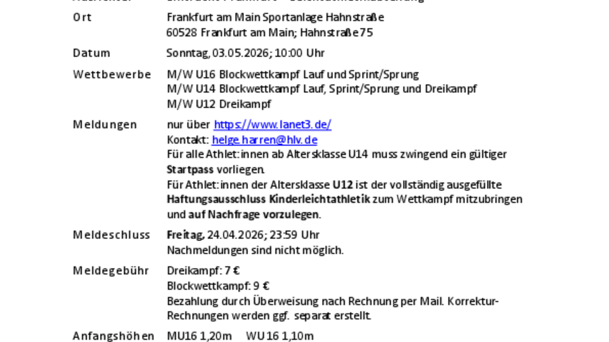 Veranstalter HLV - Kreis Frankfurt am Main