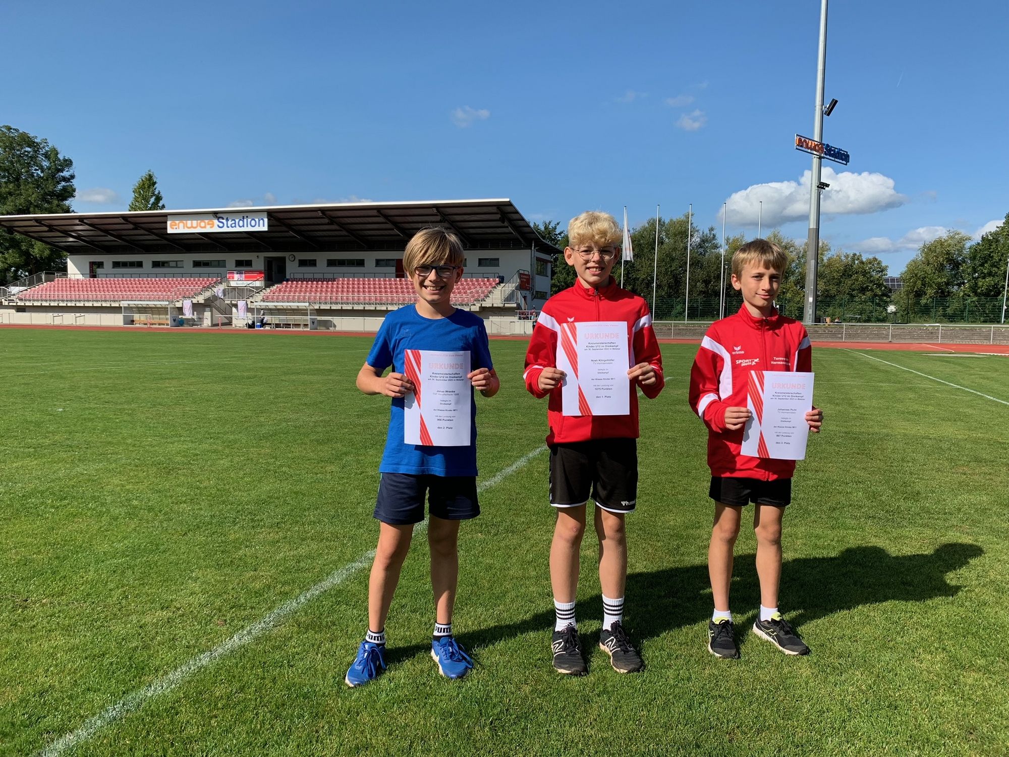 Wetzlar (mls). Nach den Lahn-Dill-Meisterschaften vorletzten Samstag beherbergte das enwag-Stadion Wetzlar vergangenen Samstag den letzten Wettkampf der Freiluftsaison im Leichtathletikkreis Wetzlar. Neben den Titelkämpfen in Einzeldisziplinen der Jugend U14, kämpften auch alle Kinder U12 und U10 im Dreikampf, bestehend aus 50 Metern, Weitsprung und Ballwurf, um die Podestplatzierungen.