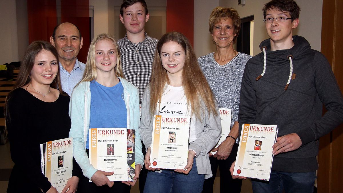 Lutz Großmann (Remsfeld) sowie Karlo Seck (Steinatal) erhielten Ehrennadeln des Hessischen sowie des Deutschen Leichtathletik-Verbandes. Mit viel Applaus verabschiedeten die Delegierten Waldemar Scholz (Borken) und Reinhold Jäger (Lendorf) für ihre jahrzehntelange Mitarbeit im Leichtathletik-Management.