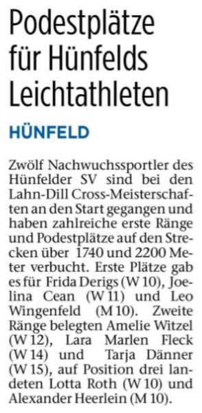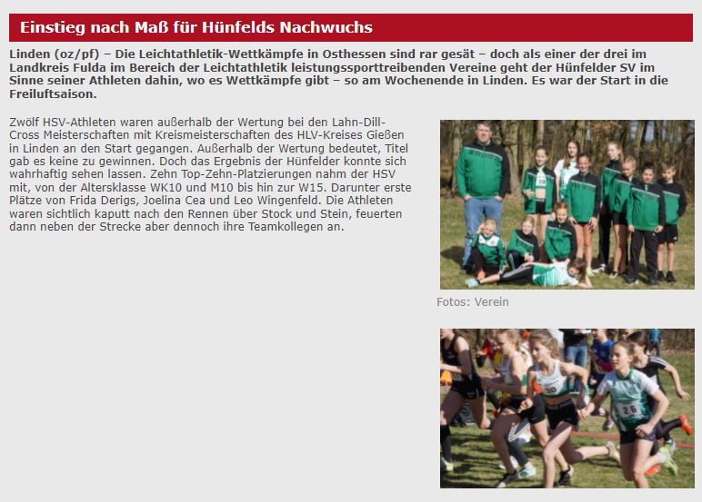 Lahn-Dill-Cross Meisterschaften mit KMS des HLV Kreis Gießen - Einstieg nach Maß für die Leichtathleten des Hünfelder SV in die Freiluftsaison