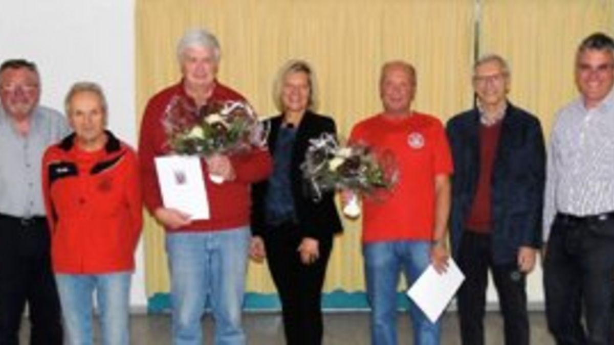 Für die in Jahrzehnten mit Engagement ausgeübten Tätigkeiten im Lauftreff, beim Volkslauf, im Vereinsvorstand, bei Sportabzeichenabnahmen, der Mitwirkung im LA-Kreisvorstand und selbst als Konditionstrainer bei Ballspielmannschaften erhielten Jürgen Bier und Rainer Rachowski den Ehrenbrief des Landes Hessen. Jeweils rund 30 Jahre waren beide in verschiedenen Positionen und vielen Bereichen der Vereins- und Verbandsarbeit eingebunden.