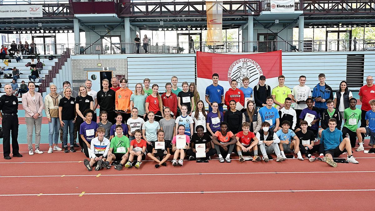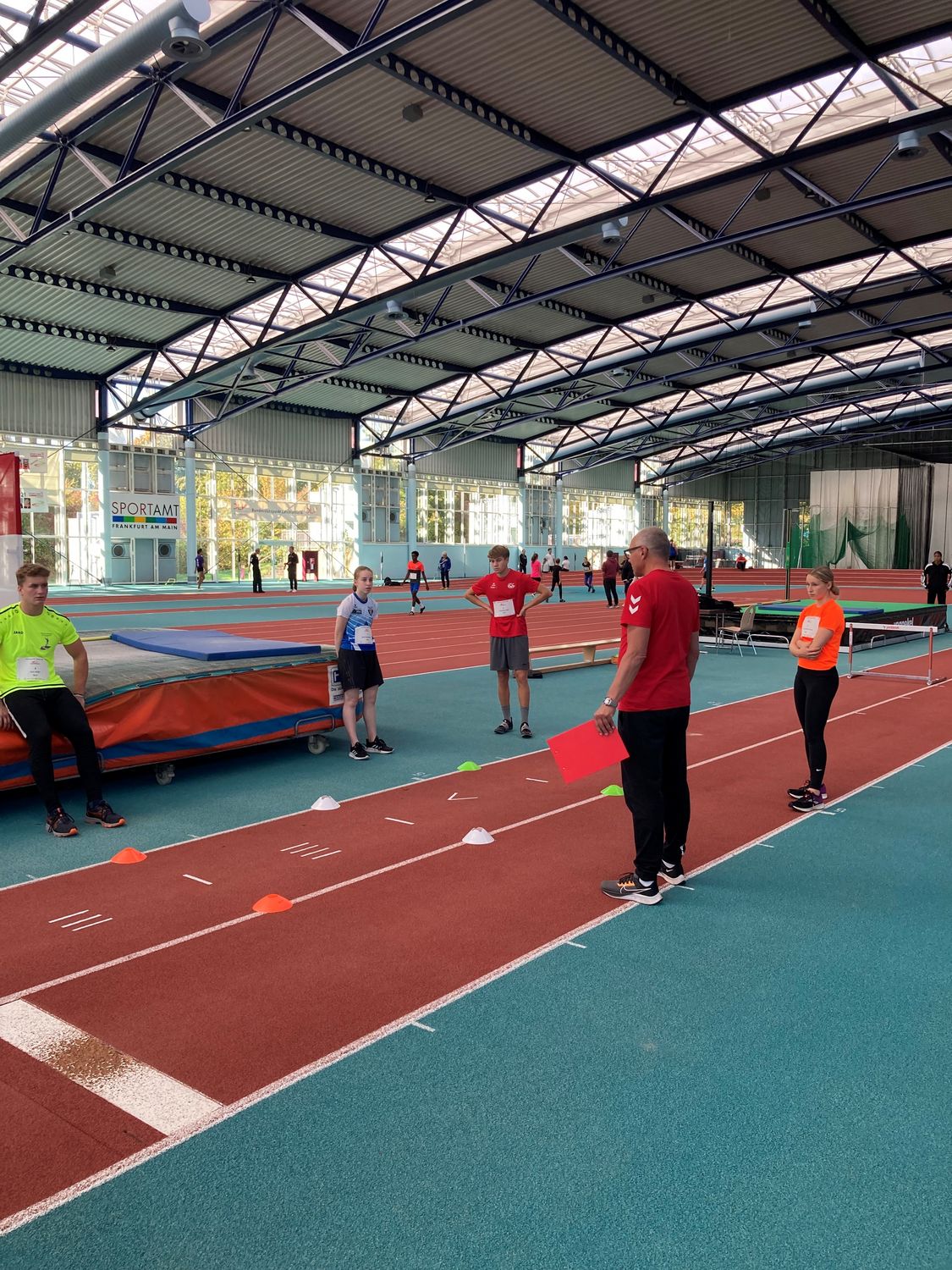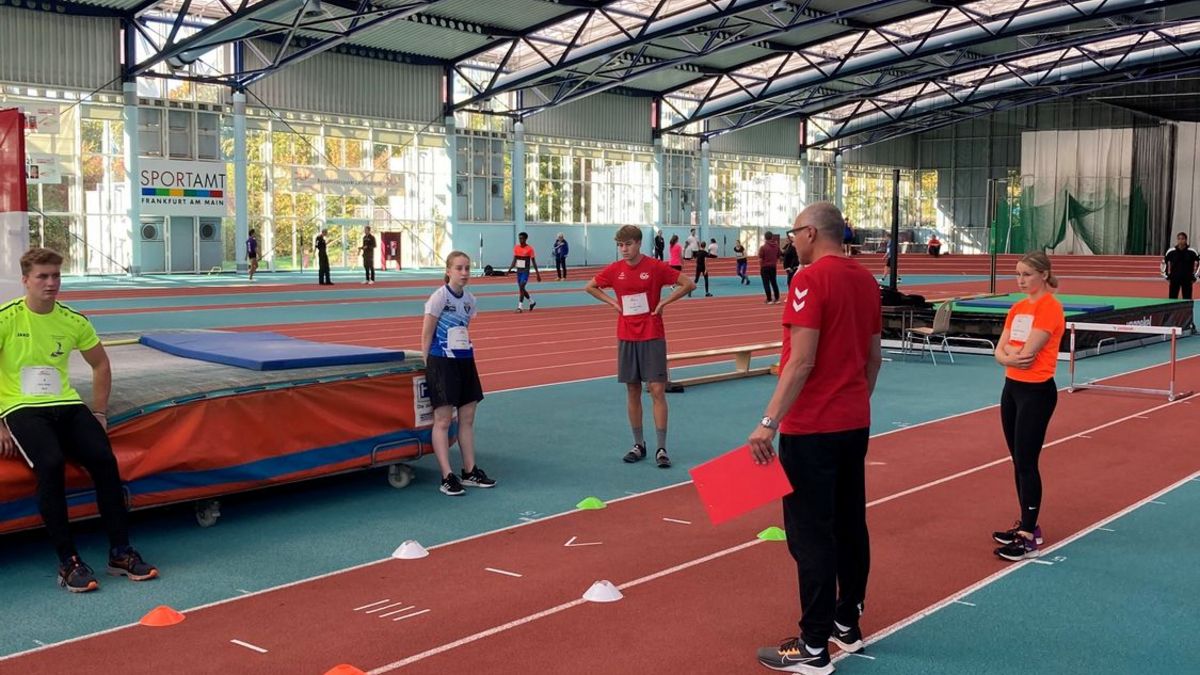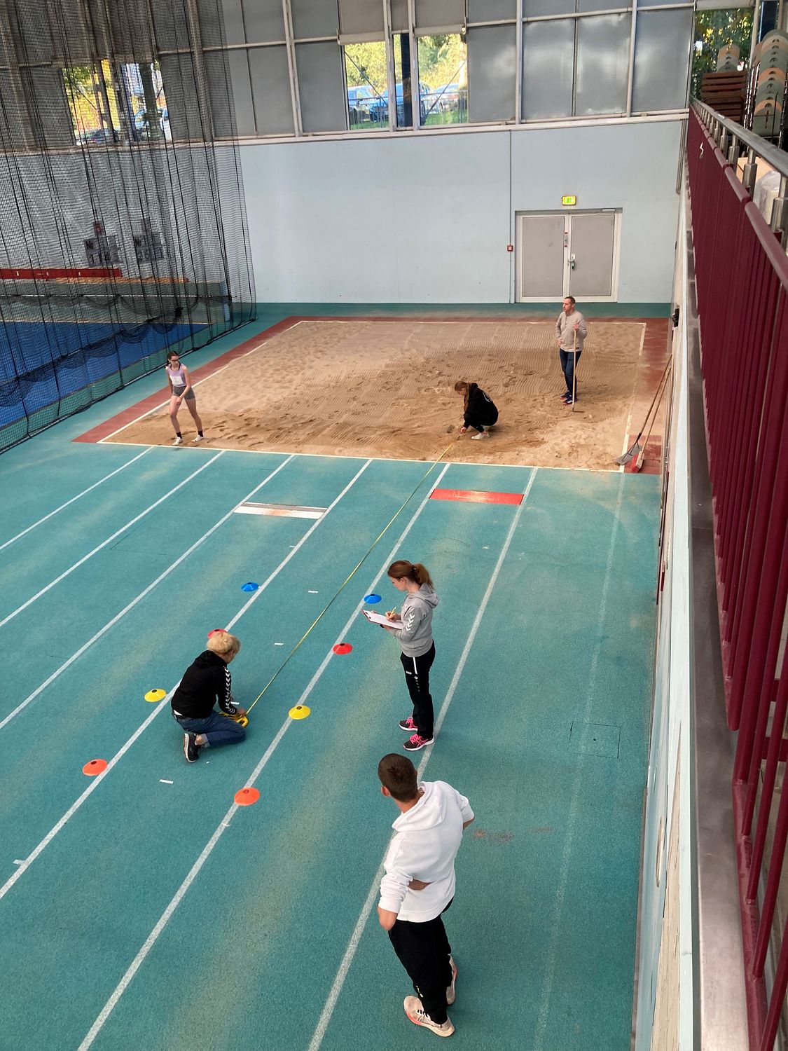 Insgesamt kamen circa 50 Landeskaderathleten aus Hessen zusammen, um gemeinsam um 11:00 Uhr in den Tag zu starten. Nach einer kurzen Begrüßung teilten sich die Sportler*innen in ihre Disziplinblockgruppen ein und starteten mit den ersten Tests. Die einzelnen Stationen wurden von unseren Chef- und Landestrainer*innen geleitet, sodass beispielsweise Bastian Otto das Kugelschocken sowie Christian Kupper und Robert Schieferer die Sprints betreuten. Insgesamt dauerten die Tests über den ganzen Mittag an, für eine kleine Stärkung zwischendurch standen Getränke unseres Sponsors Rosbacher sowie Kuchen und Laugengebäck bereit. Den Abschluss des Testtages bildeten die Disziplinblöcke Sprint/Hürde sowie Lauf/Gehen, der zahlenmäßig auch am stärksten vertreten waren. Die feierliche Landeskadernominierung schloss sich unmittelbar an die Tests an.