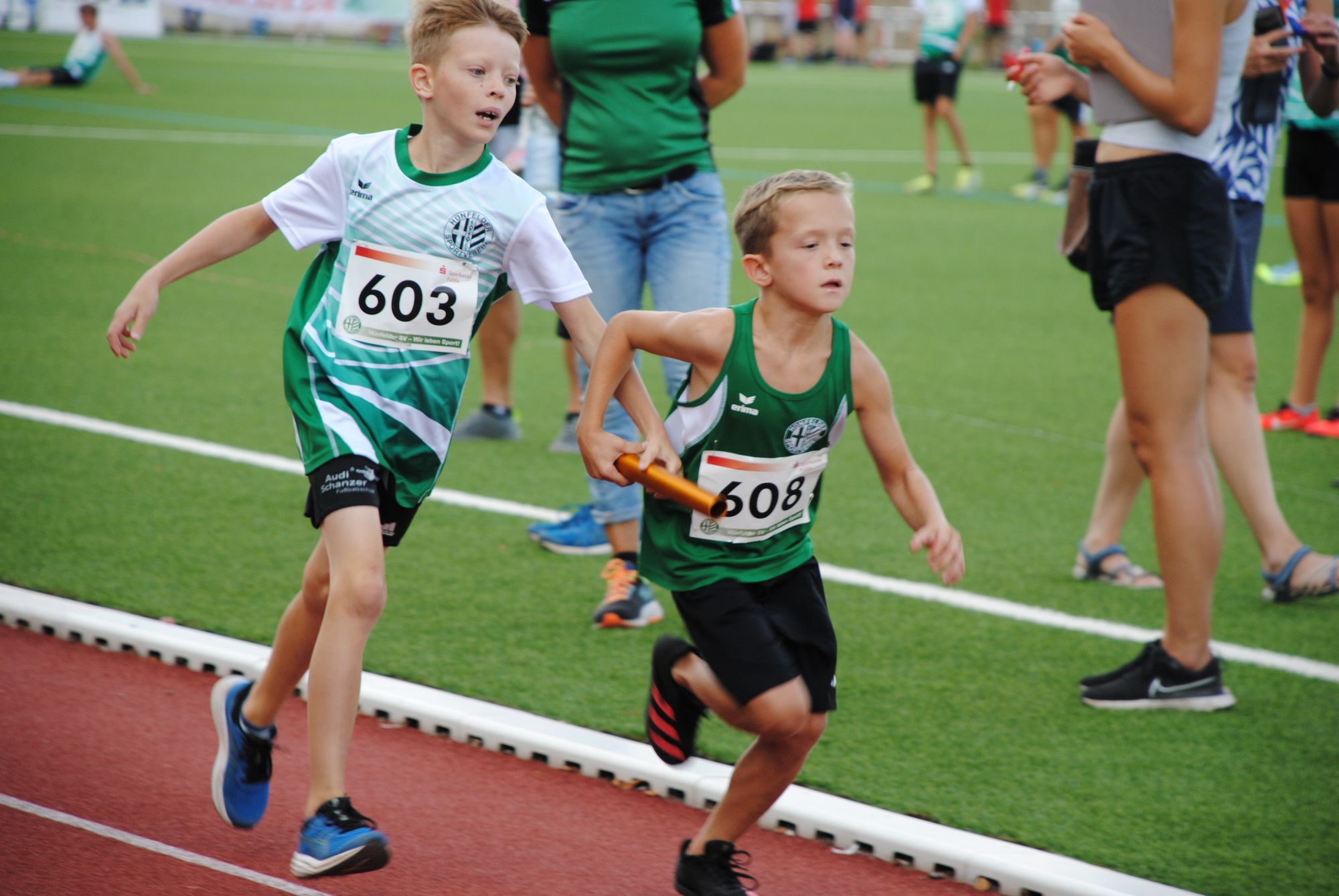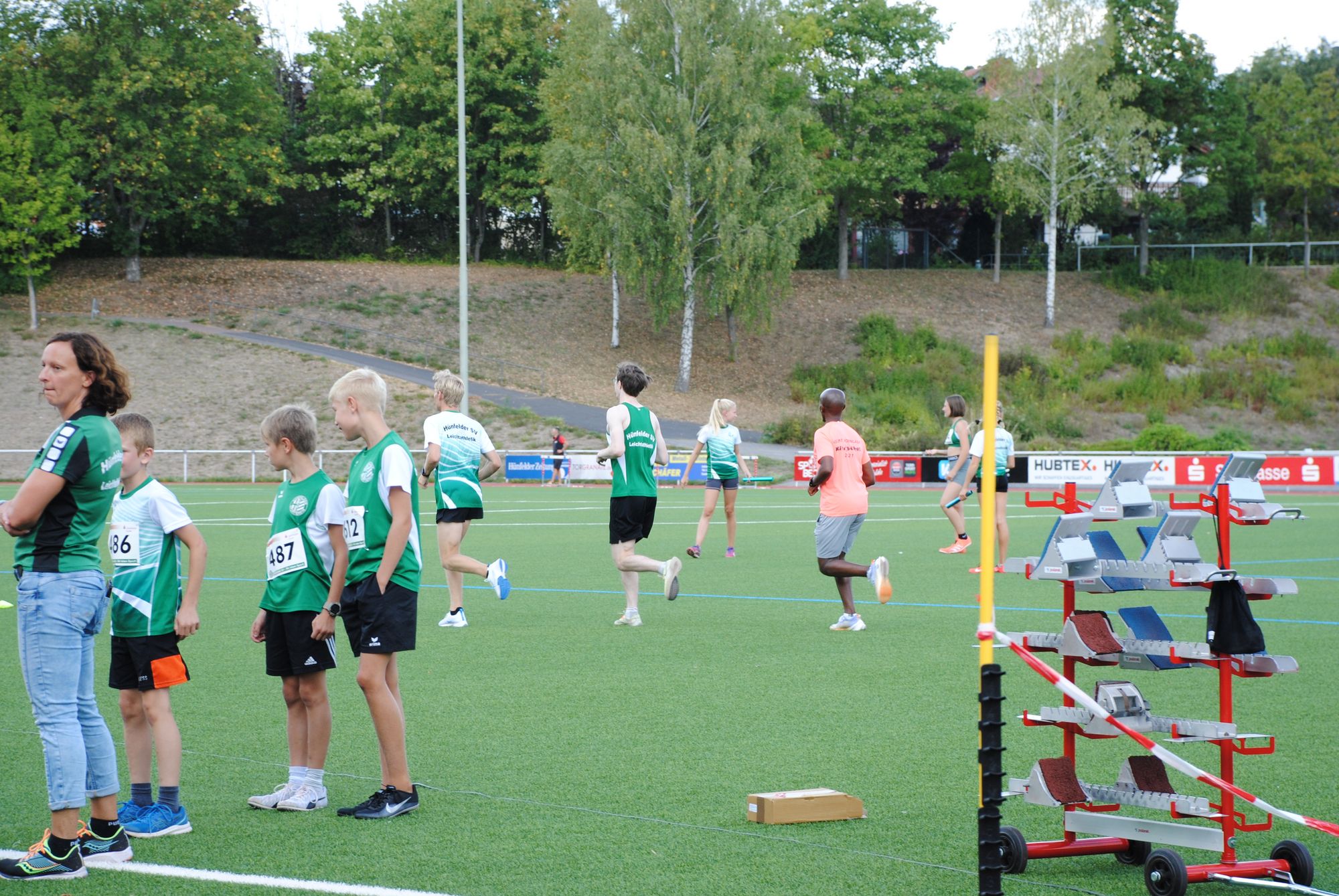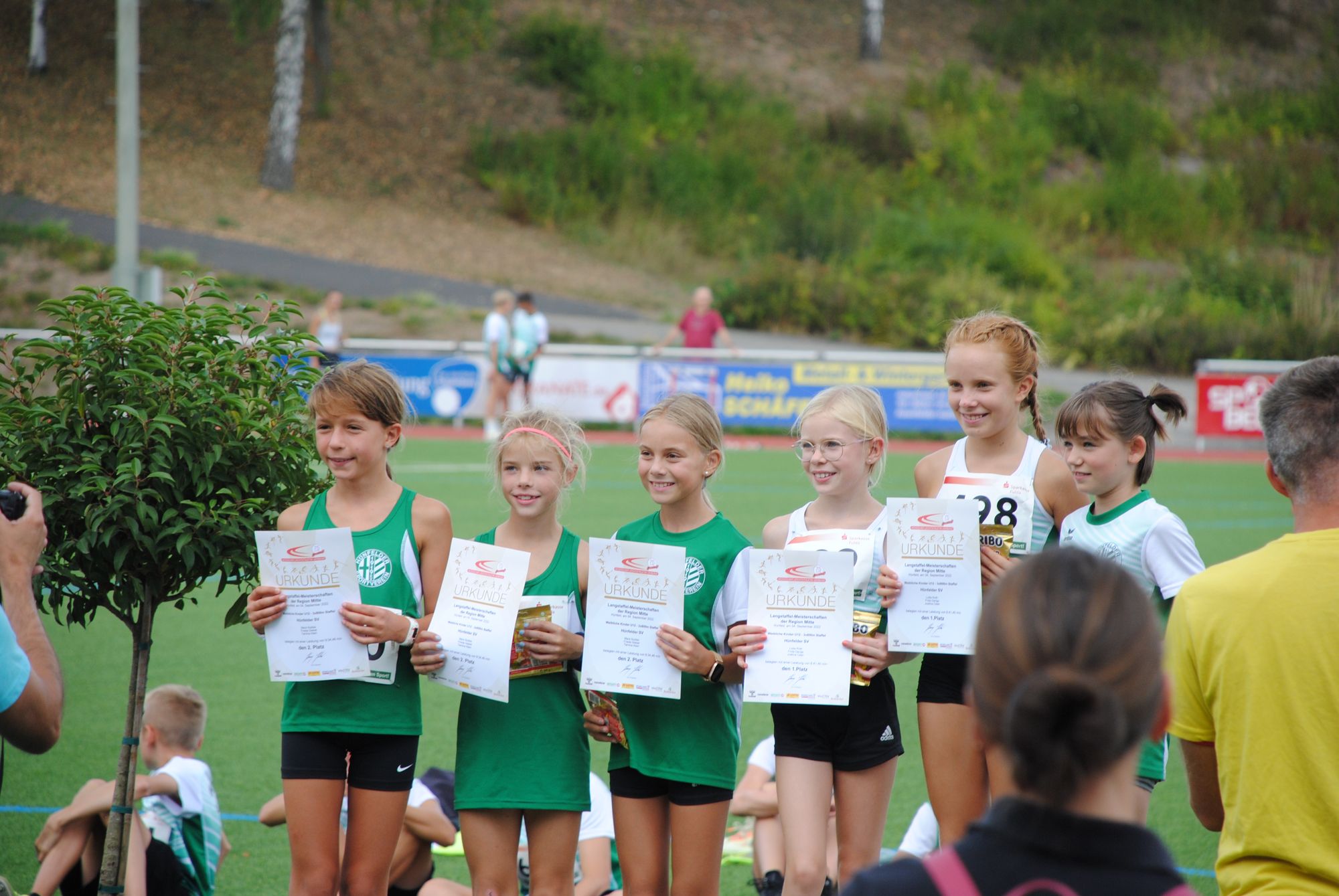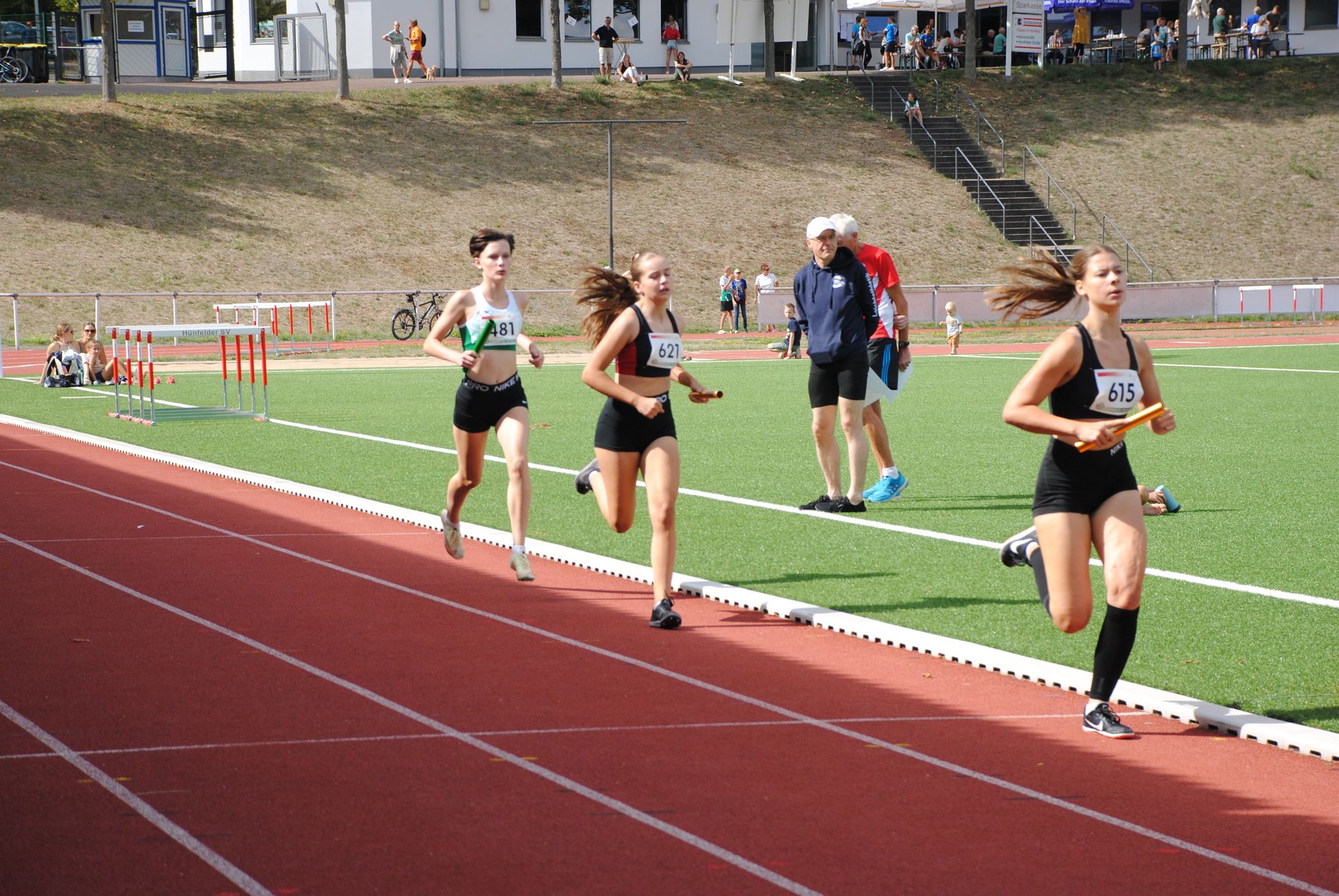 Neben den Hessischen Meisterschaften der Senioren fanden zudem die Langstaffelmeisterschaften der Region Mitte statt, die einer Hünfelder Vereinsmeisterschaft ähnelten. 12 der 16 Staffeln entsendete der Ausrichter, sechs der acht Titel blieben in Hünfeld. Einen Titel über 3 x 800 Meter verbuchte der TV Petersberg in der männlichen U 14 (Niklas Atzert, Florian Will, Maximilian Evert), der in der weiblichen U 20 ging an Wettenberg. Allerdings lief die Hünfelder U 16 (Greta Lucia Ritz, Tarja Dänner, Lara Marlen Fleck) in 7:37,51 Minuten einen schnellere Zeit als das U 20-Trio (7:59,58) und rangiert damit an zehnter Stelle der Deutschen Bestenliste! Die weiteren Titel gingen an: