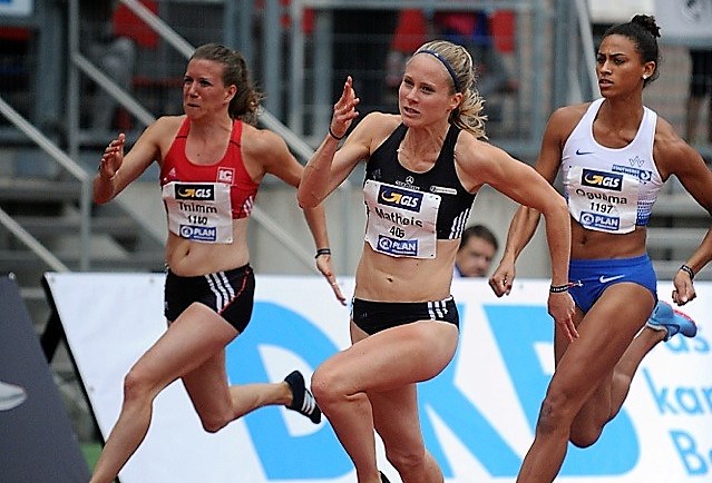 Schluss mit 26 Jahren. Nach Kathrin Klaas (Hammerwurf/LG Eintracht Frankfurt) hat auch die hessische Topsprinterin Lara Matheis von der TSG Gießen-Wieseck ihr Karriereende bekanntgegeben. „Ich habe alles erreicht, was ich erreichen wollte. Mein Ziel war immer, zumindest einmal international zu starten (…) Ich denke, ich kann stolz darauf sein, dass ich mich in einer starken Phase des deutschen Frauensprints mit in der Spitze zeigen konnte“, sagte die Sport- und Fitnesskauffrau dem <link https: www.giessener-anzeiger.de sport leichtathletik giessen leichtathletin-lara-matheis-von-der-tsg-wieseck-beendet-sprintkarriere_19109690 _blank external-link-new-window internal link in current>Gießener Anzeiger. Lara Matheis gewann bei der sogenannten Staffel-WM 2017 auf den Bahamas die Silbermedaille mit der deutschen 4x200-Meter-Staffel, bei der Team-EM war sie mit der 4x100-Meter-Staffel erfolgreich. Die Mittelhessin aus Lich ist mit persönlichen Bestzeiten von 11,29 Sekunden (100 Meter) und 23,13 Sekunden (200 Meter) hinter der seit neun Monaten verletzten Landesrekordhalterin Lisa Mayer (Sprintteam Wetzlar) die bislang zweitschnellste HLV-Sprinterin. Bei den deutschen Hallenmeisterschaften 2017 in Leipzig wurde sie Zweite über 200 Meter und Sechste über 60 Meter. Bei der Freiluft-DM 2017 Vierte über 200 Meter. Ihre Hallen-Bestzeiten: 7,34 und 23,19 Sekunden. Lara Matheis arbeitet seit Anfang Oktober wieder Vollzeit.