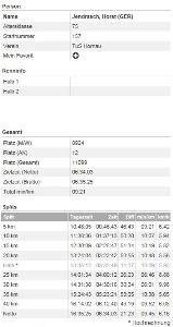 Doch bereits bei seinem 2014er-Rennen gab es zeitliche Ungereimtheiten - wenn die von Mika Timing veröffentlichten Zahlen stimmen. Wovon auszugehen ist. Zum einen ist seine Halbmarathonzeit (3:33:49 Stunden) mit einem Sternchen versehen, es handelt sich wiederum um eine Hochrechnung. Interessant sind die nachfolgenden 5-Kilometer-Abschnitte. Von Kilometer 20 bis 25 benötigte der Kelkheimer unglaubliche 37:30 Minuten, von Kilometer 25 bis 30 sogar sensationelle 30:04 Minuten. Zeiten, die Jendrasch unmöglich realisieren konnte. Denn seine anderen 5-Kilometer-Splits haben eine Schwankung von 46:43 bis 53:55 Minuten. Die Zielzeit vor einem Jahr lautete übrigens 6:34:03 Stunden. Was sich ungefähr deckt mit den Werten aus den Jahren 2013 (6:37:47) und 2012 (6:32:39). Erst im Jahr 2011 fällt mit 6:09:39 Stunden eine extreme Leistungskorrektur auf. „Im vergangenen Jahr bin ich korrekt über die Halbmarathon-Matte gelaufen“, sagt Jendrasch.