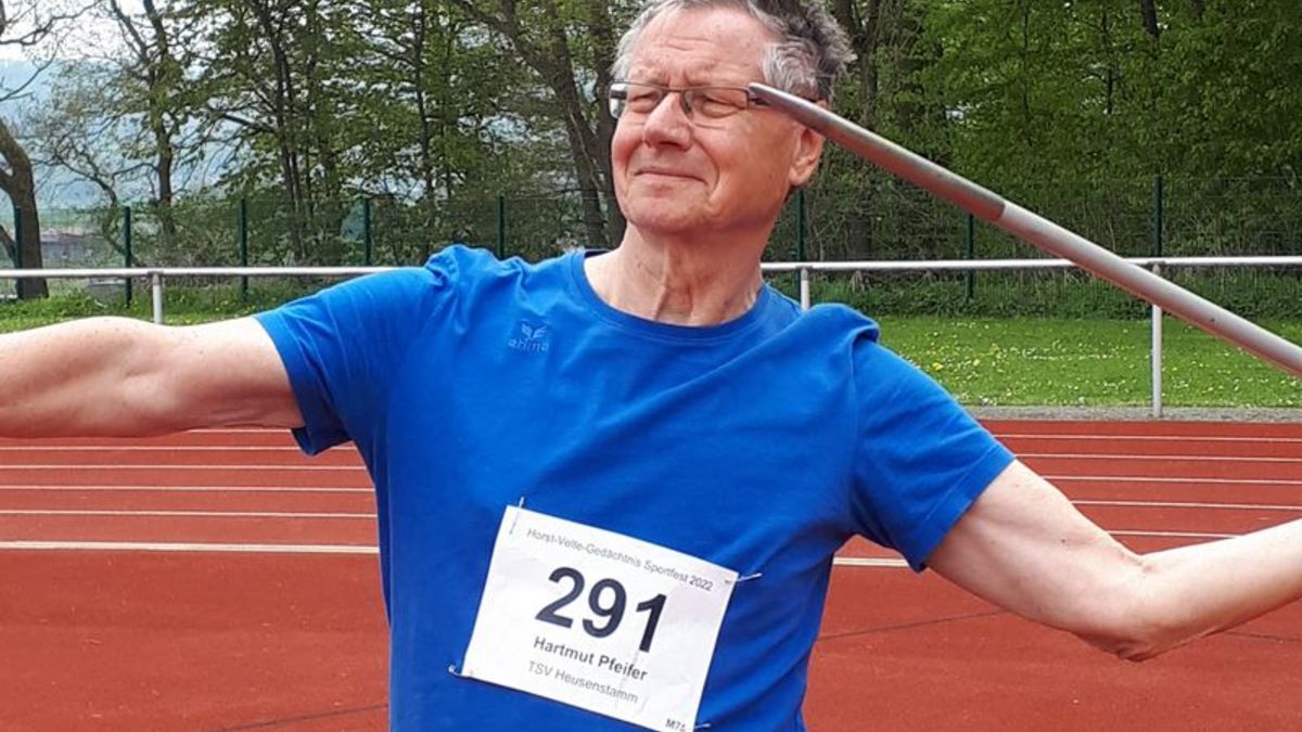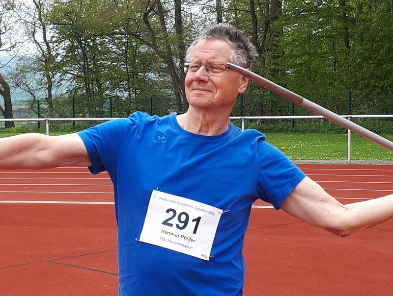 Alle 3 Wurfdisziplinen absolvierte auch Hartmut Pfeifer (TSV Heusenstamm). Bei den Männern M75 war er mit der Kugel (10,46 Meter), mit dem Diskus (25,85 Meter) und im Speerwurf (29,97 Meter) nicht zu bezwingen.